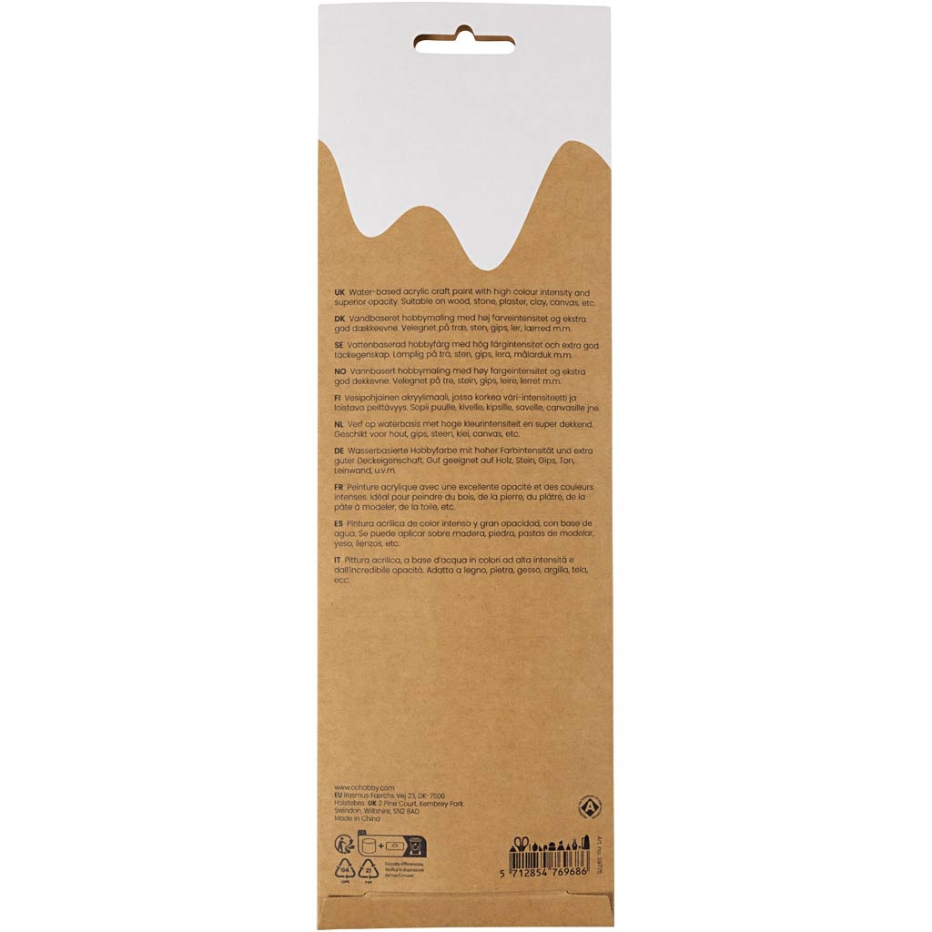 De Plus Color Acrylverf van Creativ Company is een veelzijdige set die speciaal is samengesteld met Halloween kleuren. Deze set bevat zes tubes van elk 5 ml en komt in een handige doos, ideaal voor creatieve projecten rondom het griezelige seizoen. Dankzij het compacte formaat kun je de verf gemakkelijk meenemen en opbergen.