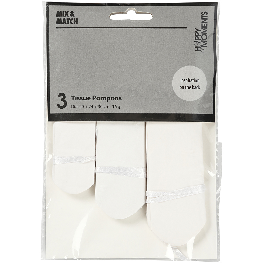 Creativ Company Pompon van papier, d 20+24+30 cm, 14 gr, wit, 3 stuk/ 1 doos