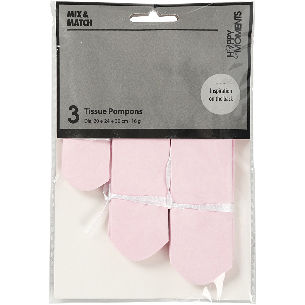 Creativ Company Pompon van papier, d 20+24+30 cm, 16 gr, lichtrood, 3 stuk/ 1 doos