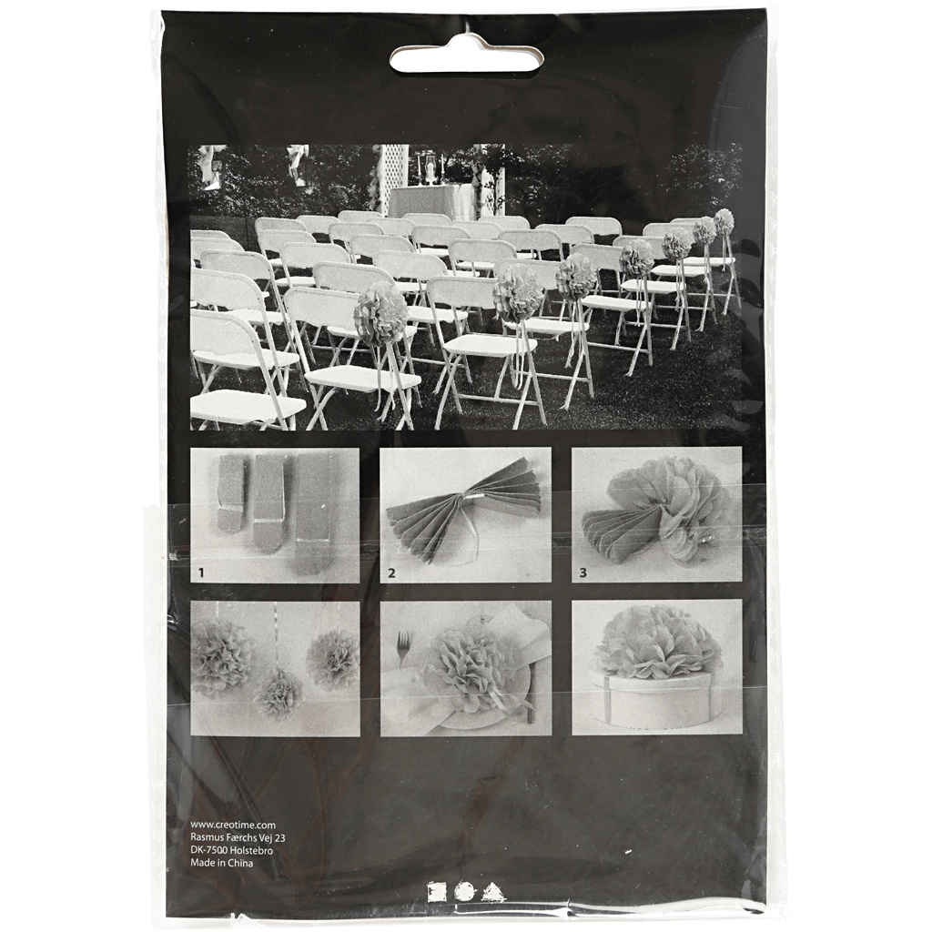 Luchtige pompoms van zijdepapier. Vouwt uit tot ronde ballen en vastgebonden met touw. Set met 3 verschillende maten. Samengevouwen geleverd