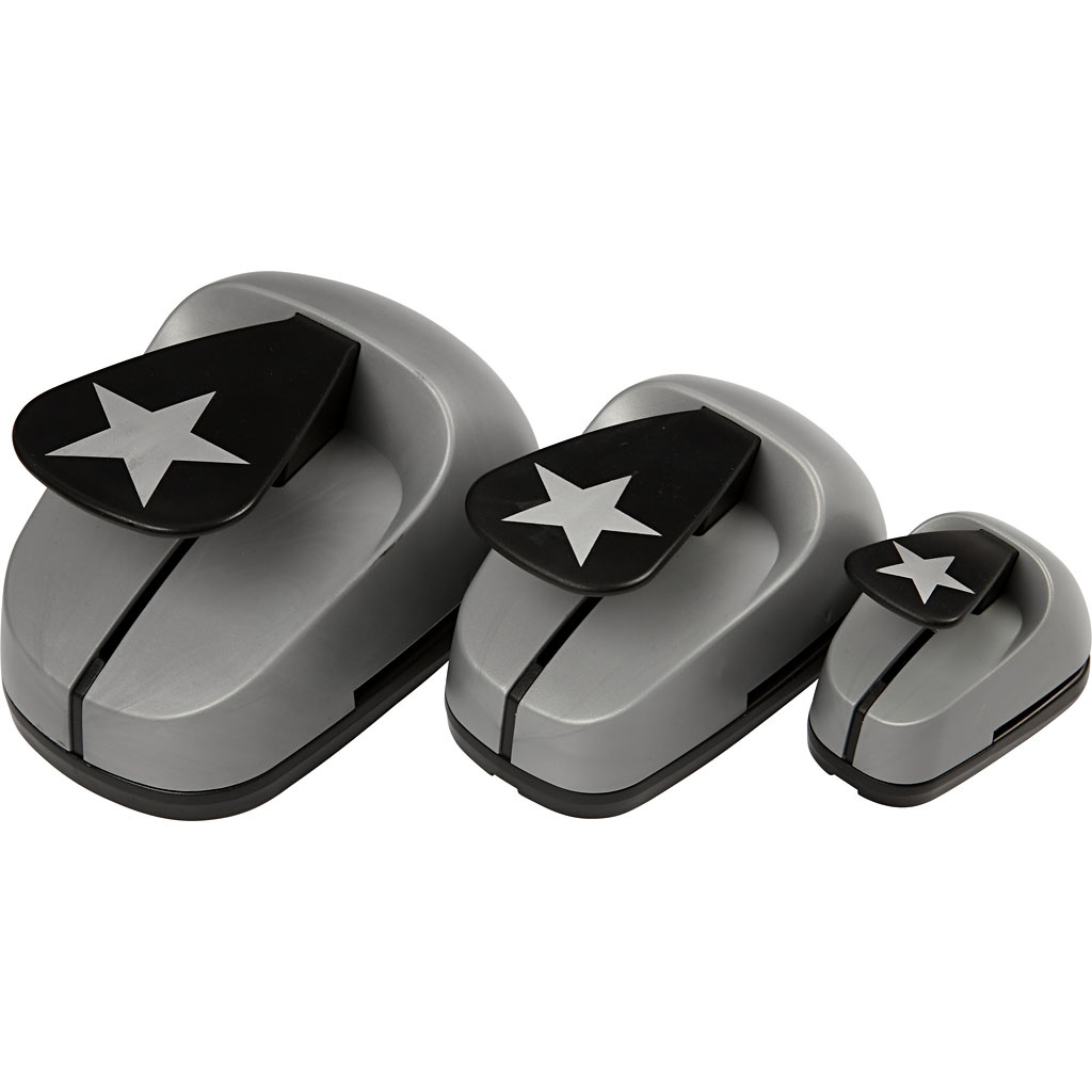 Set papierponsen in 3 verschillende maten, ideaal te combineren. Ponst papier en dun karton - max 240 gr. Lees meer