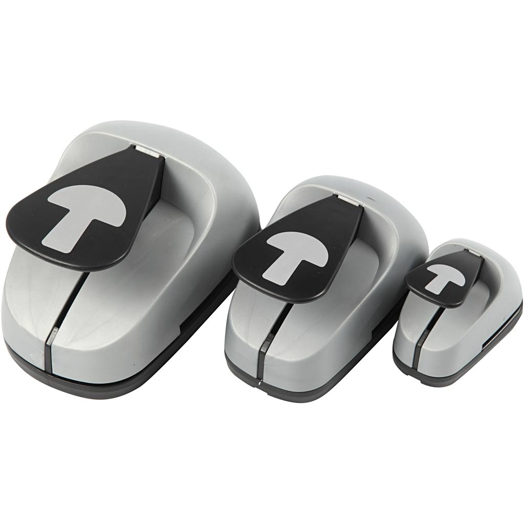 Set papierponsen in 3 verschillende maten, ideaal te combineren. Ponst papier en dun karton - max 240 gr. Lees meer