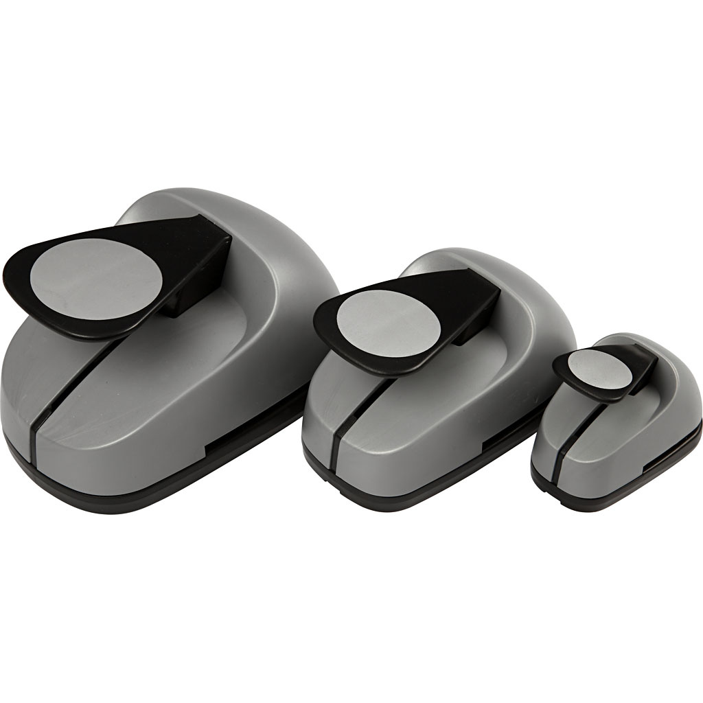 Set papierponsen in 3 verschillende maten, ideaal te combineren. Ponst papier en dun karton - max 240 gr.