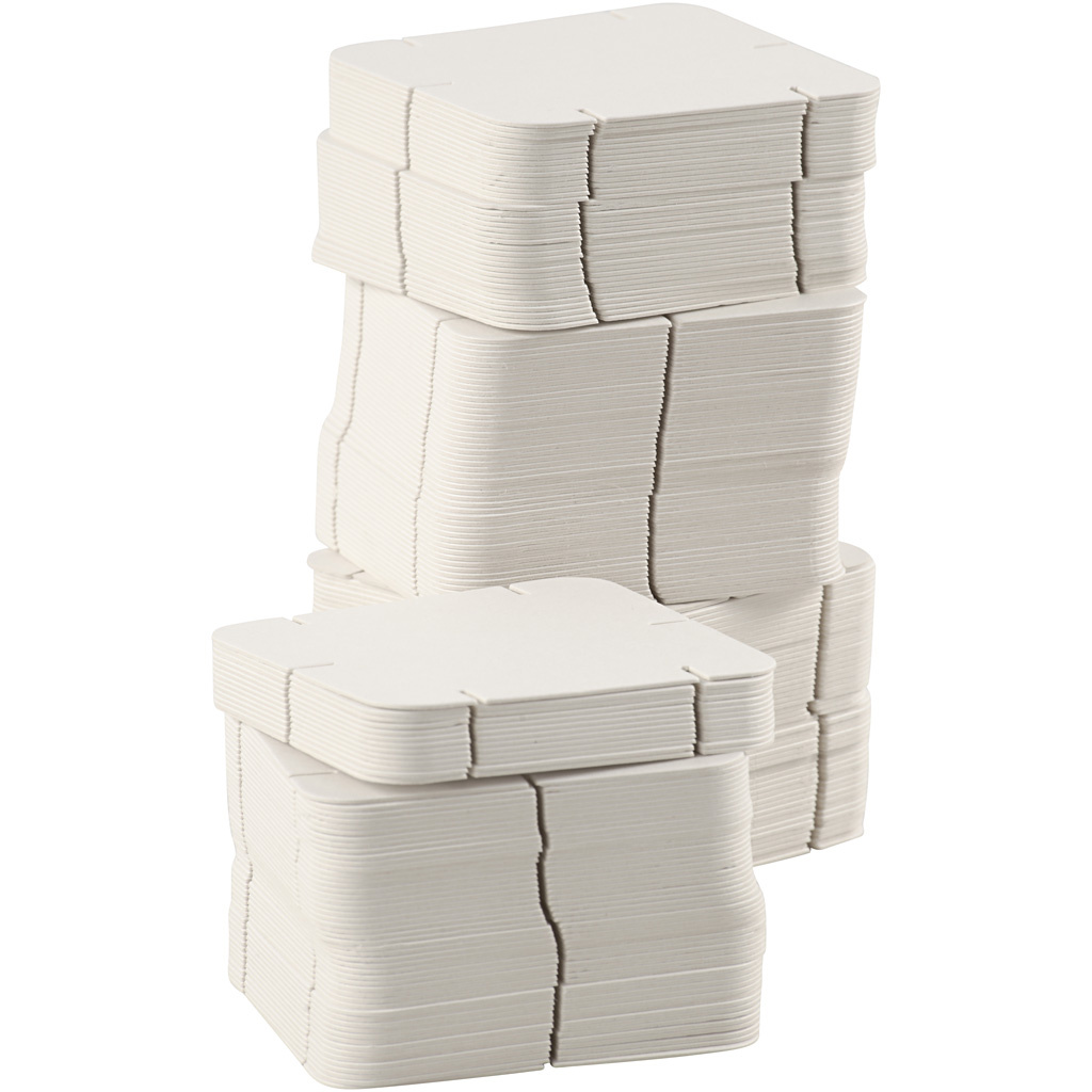 Vierkante stukken zwaar karton met mat oppervlak en inkepingen aan de randen