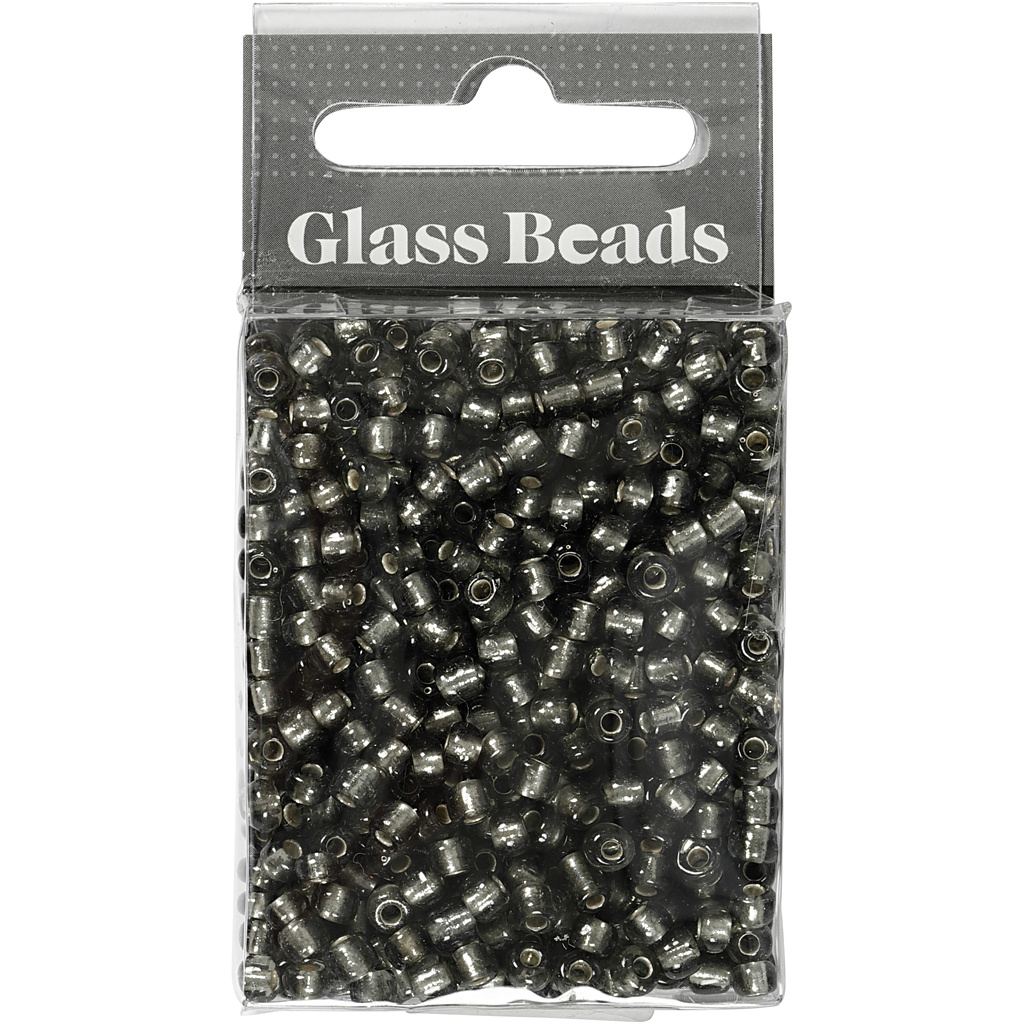 Creativ Company Rocailles, d 4 mm, afm 6/0, gatgrootte 0,9-1,2 mm, helder grijs, 25 gr/ 1 doos