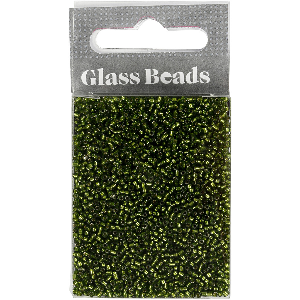Creativ Company Rocailles, d 1,7 mm, afm 15/0, gatgrootte 0,5-0,8 mm, gras groen, 25 gr/ 1 doos
