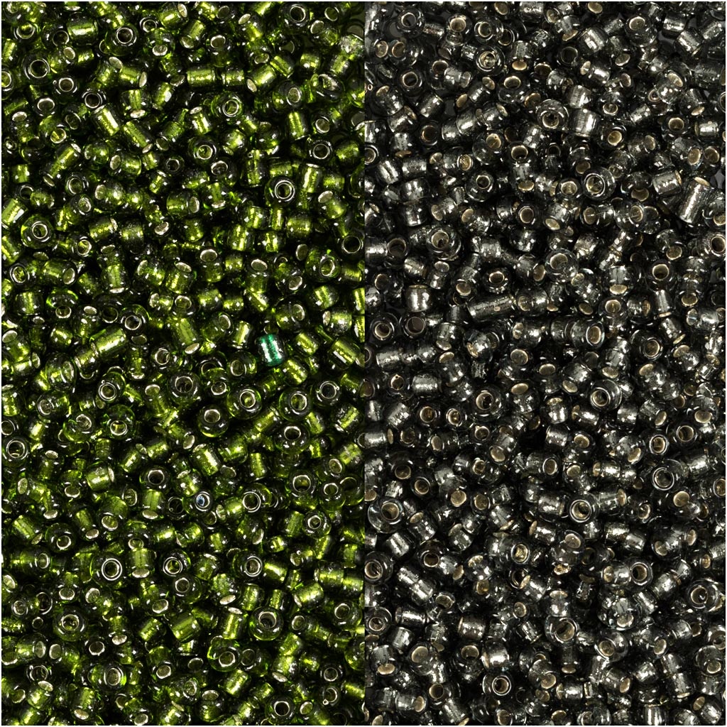 Creativ Company Rocailles, d 1,7 mm, afm 15/0, gatgrootte 0,5-0,8 mm, gras groen, grey green, 2x7 gr/ 1 doos