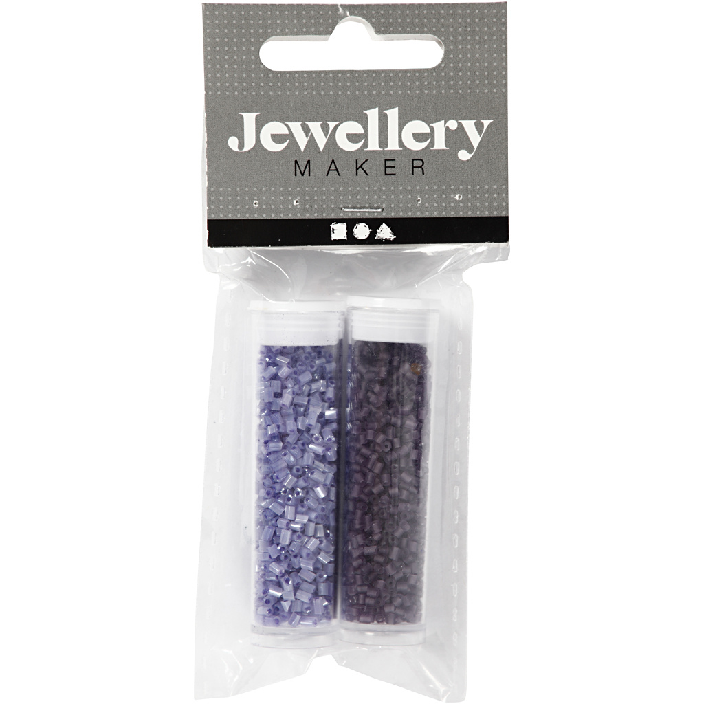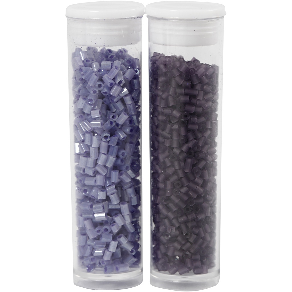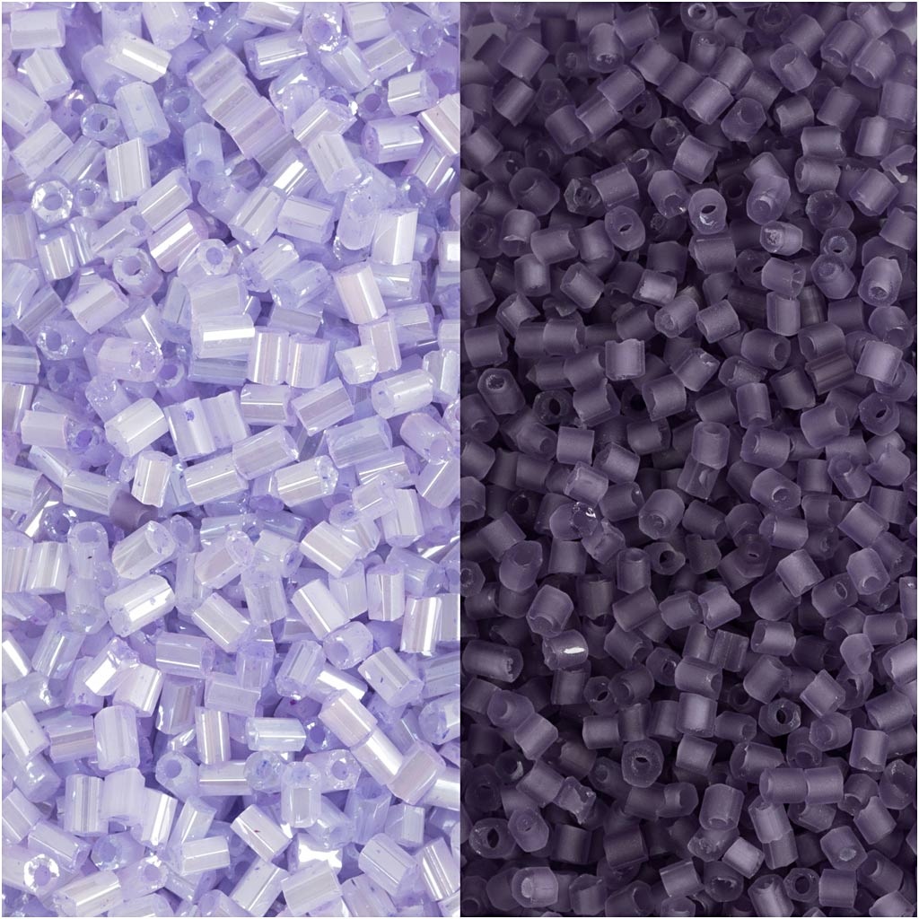 Creativ Company Rocailles 2-cut, d 1,7 mm, afm 15/0, gatgrootte 0,5 mm, frosted lila, transparant paars, 2x7 gr/ 1 doos