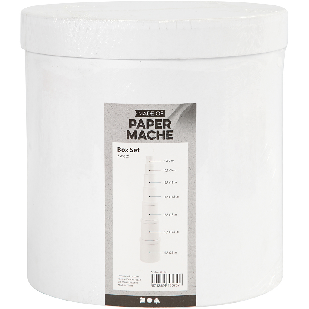 Creativ Company Ronde dozen, rond, H: 7,5+10,2 +12,7+15,2 +17,7+20,2 +22,7 cm, d 7+9 +12+14,5 +17+19,5 +22 cm, wit, 7 stuk/ 1 set
