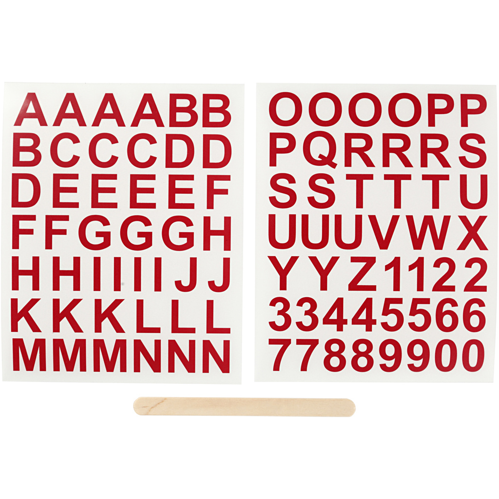 Creativ Company Rub-on Stickers, letters en cijfers, H: 17 mm, B: 17 mm, vel 12,2x15,3 cm, rood, 1 doos