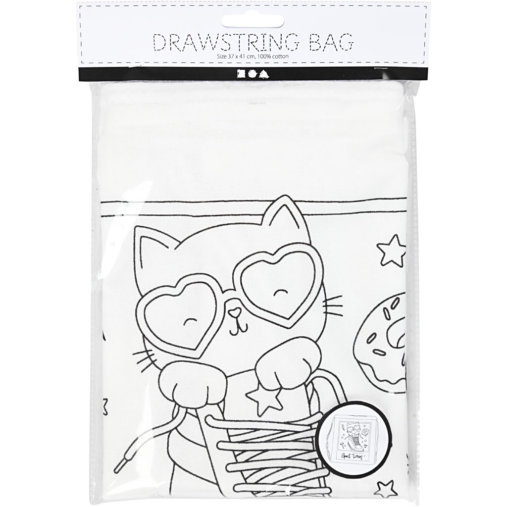 Wees creatief en personaliseer deze handige rugzak met kleurrijke voorgedrukte motieven aan één kant. Gebruik textielstiften in uw favoriete kleuren om de tas uniek te maken. De tas is gemaakt van 100% katoen en heeft een praktische trekkoordsluiting om s Lees meer