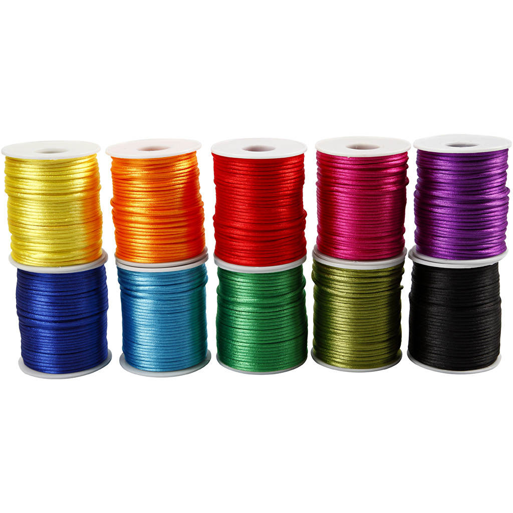 Creativ Company Satijnkoord, dikte 2 mm, sterke kleuren, 10x50 m/ 1 doos