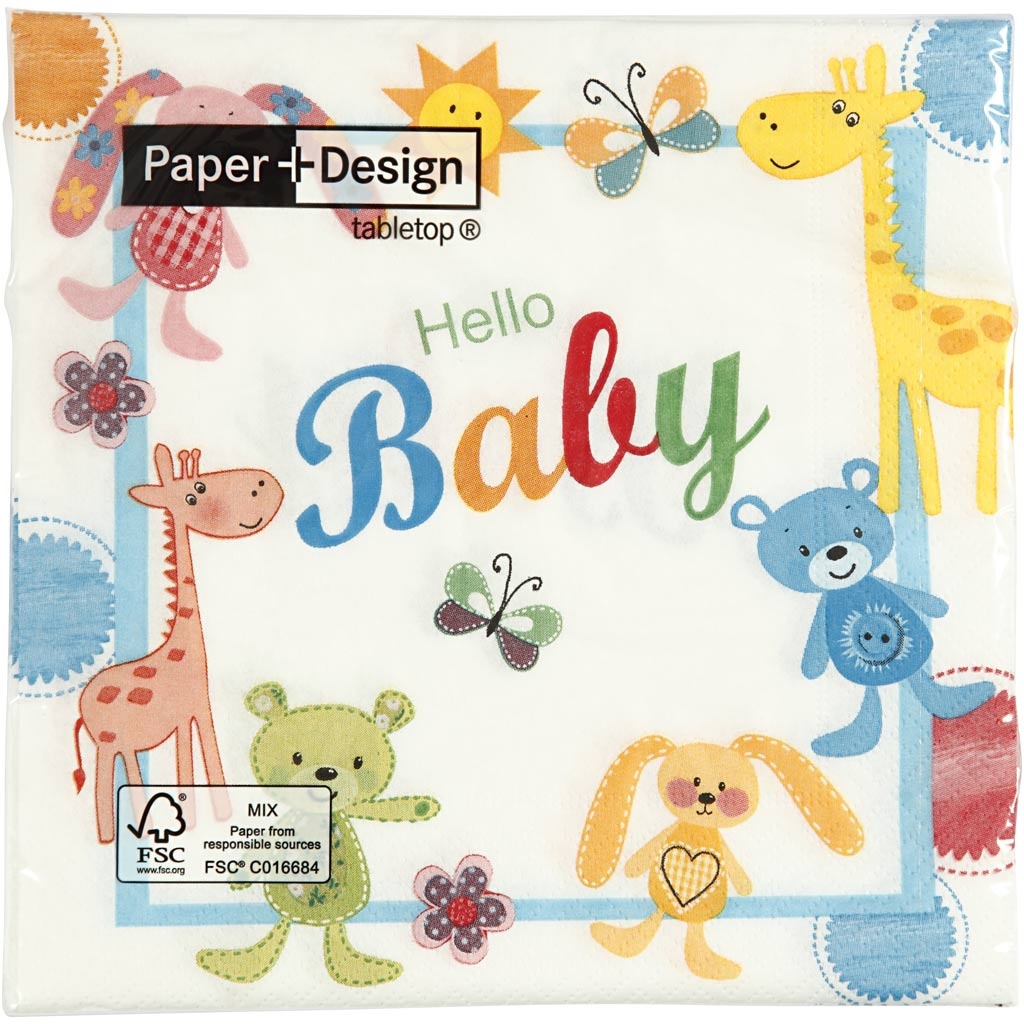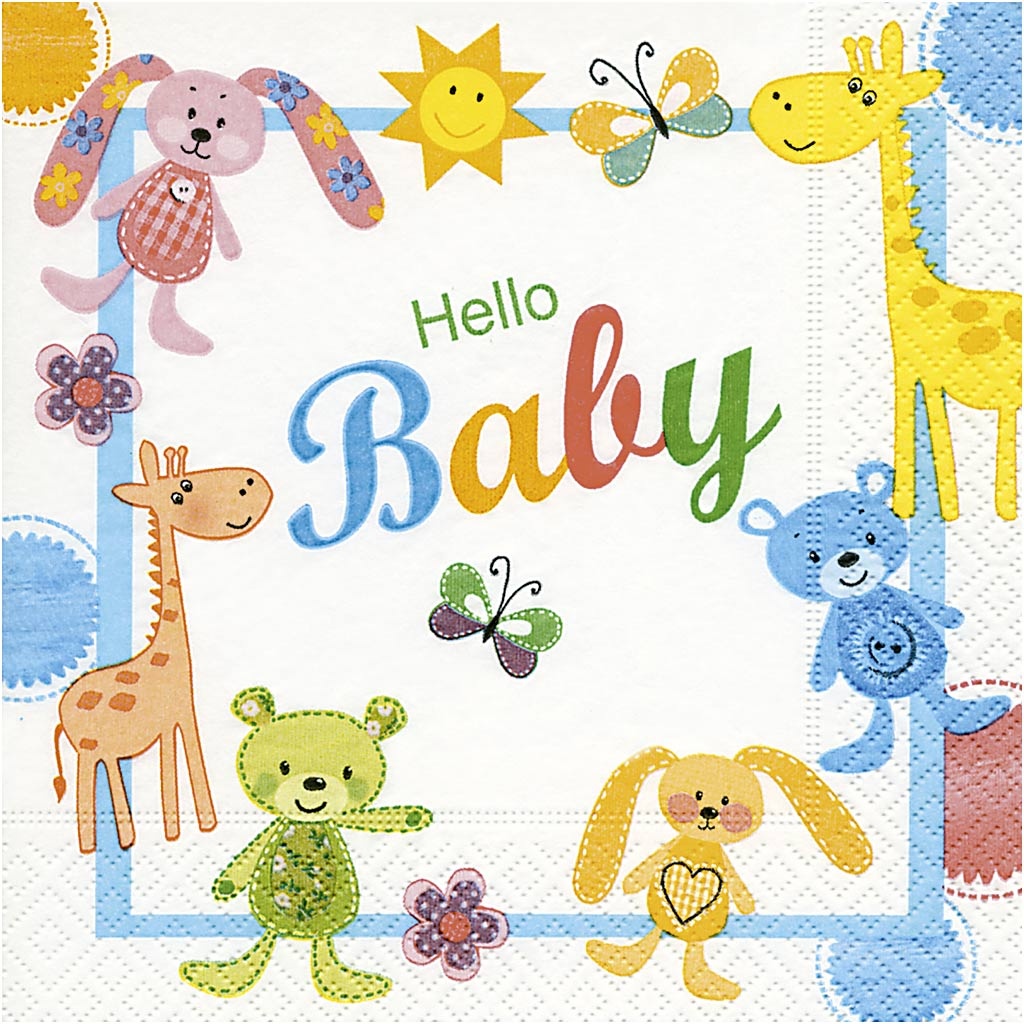 Creativ Company Servetten, Hello Baby, afm 33x33 cm, 20 stuk/ 1 doos
