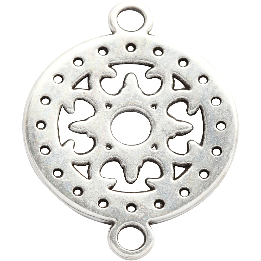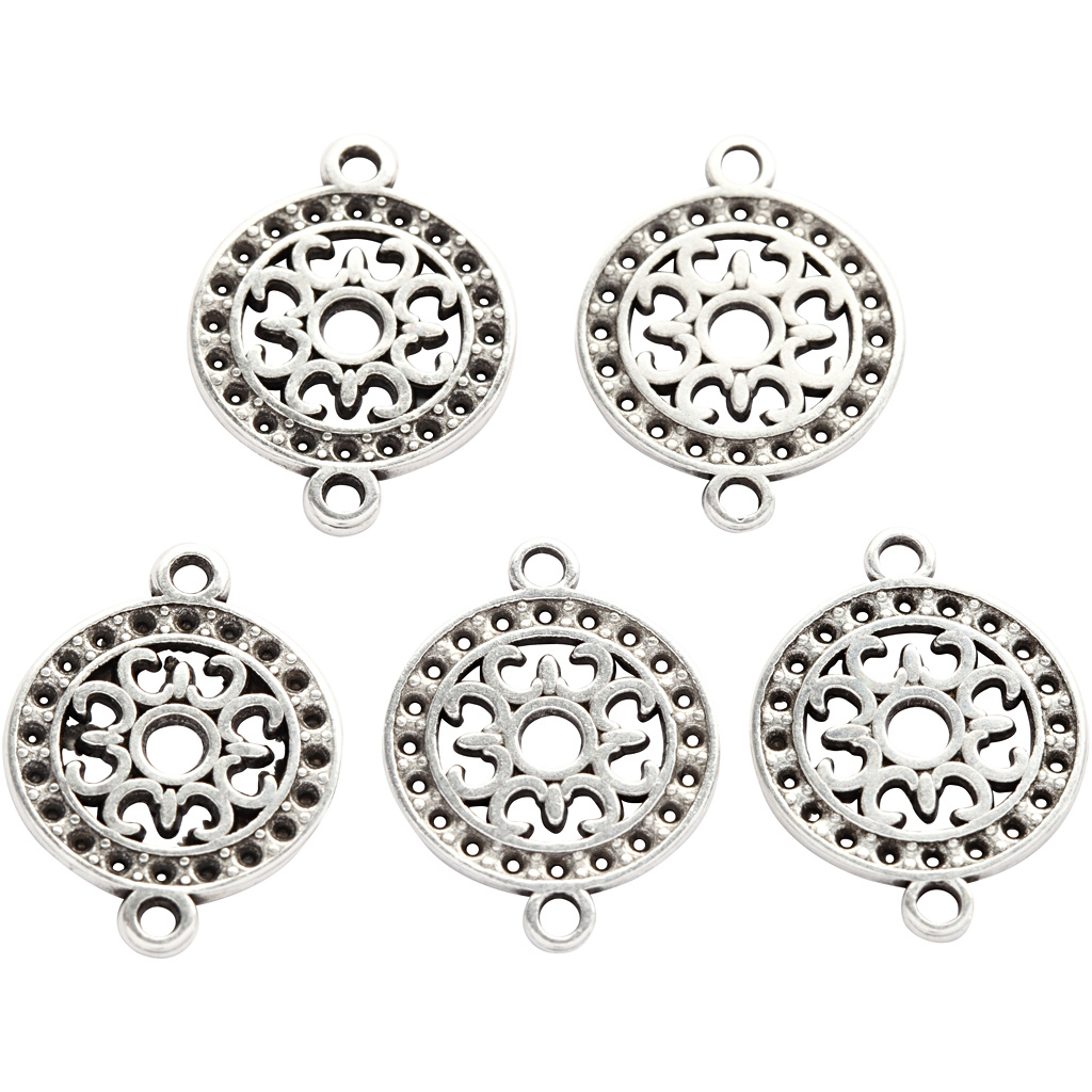 De Creativ Company sieraden hanger is een veelzijdig sieraadonderdeel van metaal met een verzilverde afwerking. De set bevat vijf hangers met een diameter van 14 mm en een gatgrootte van 1,2 mm, waardoor ze geschikt zijn voor zowel smalle kettingen als fijne armbanden. Het zilverkleurige design past bij uiteenlopende stijlen en voegt een subtiele glans toe aan uw creaties.