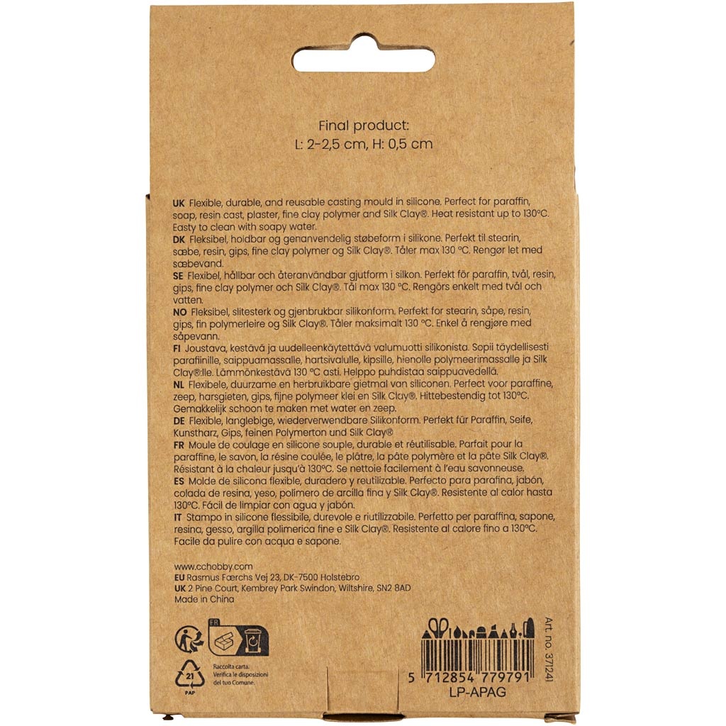 Met de flexibele siliconen vorm kunt u eenvoudig prachtige en gedetailleerde motieven gieten. Perfect voor stearine, zeep, hars, gips, sieradenklei en Silk Clay®. Ovenbestendig tot 130 graden