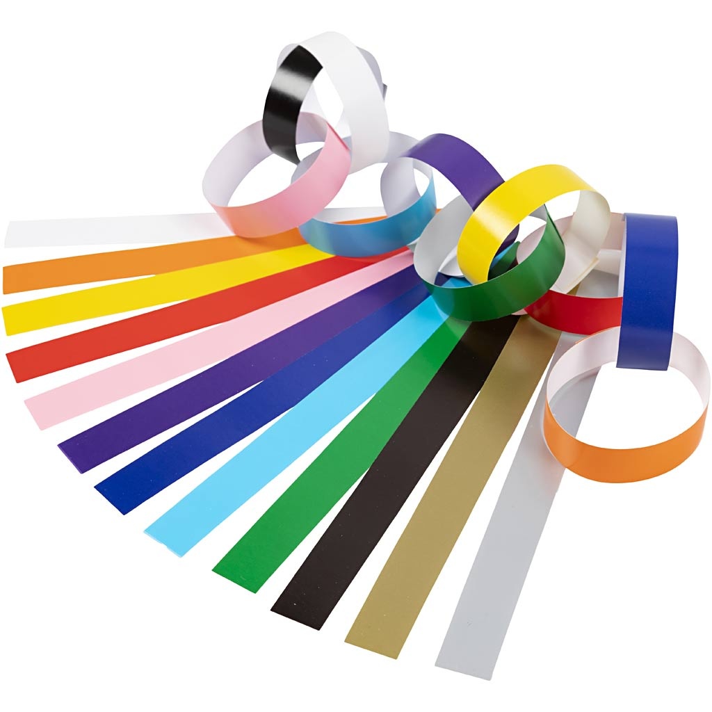 Stroken van glanspapier in heldere en sterke kleuren en een witte achterkant. Pakket bevat 13 verschillende kleuren Lees meer