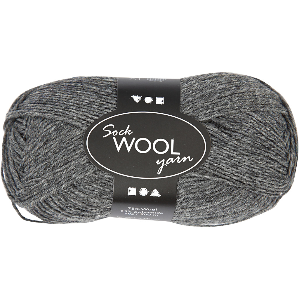 Creativ Company Sokkengaren, L: 200 M, donkergrijs, 50 gr/ 1 bol