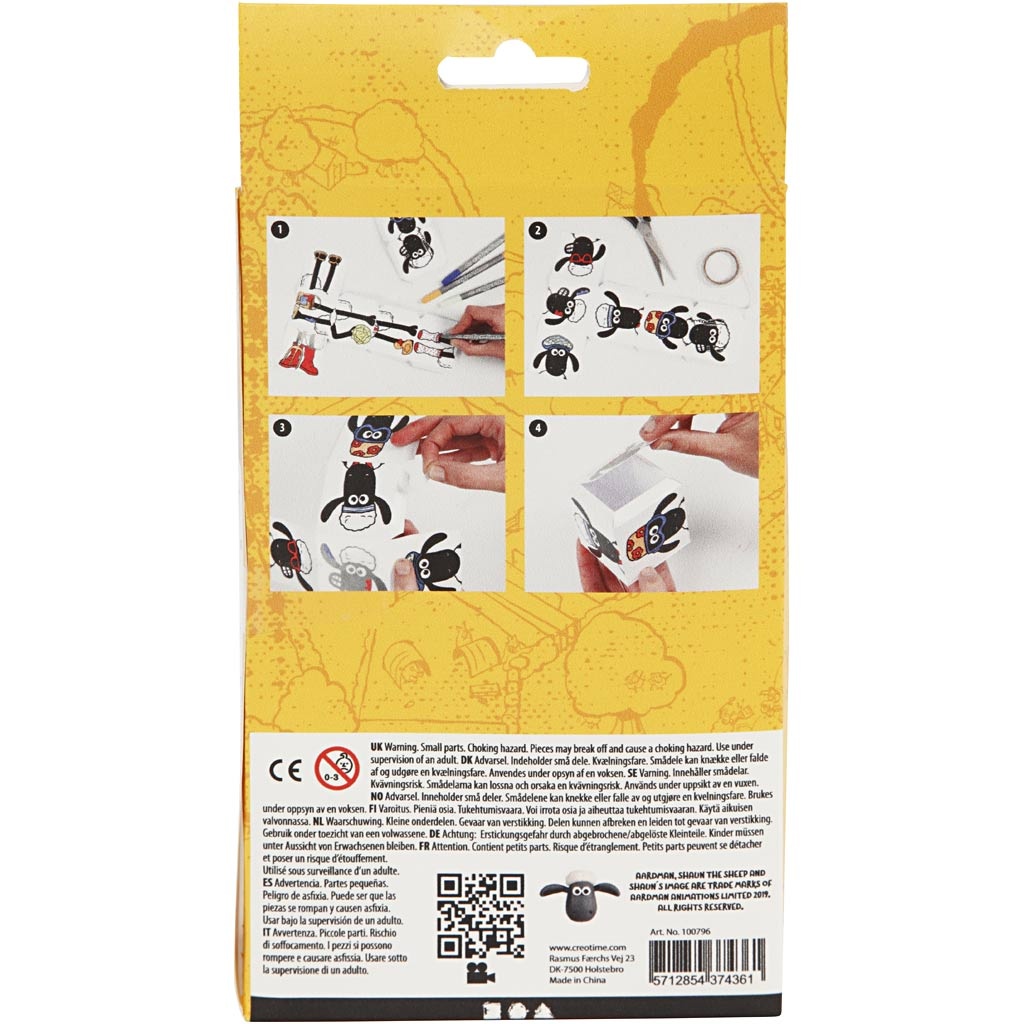 Materialenset met zware kartonnen stapelblokken met voorgedrukte motieven van 'Shaun het schaap' voor decoratie met inkt. Inclusief inspiratie Inhoud: 2x3 vellen met voorbedrukte vellen van karton, 4-delig. Dubbelstiften en dubbelzijdig klevend tape