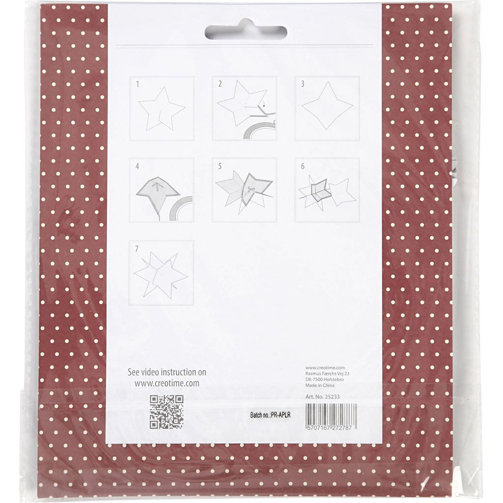 Uitgestanste sterren van stevig karton van de Vivi Gade Design serie. In elkaar te zetten tot 3 stuks 3D sterren, elk bestaande uit 6 sterren. Pakket met 18 sterren met gleuf - aan één kant bedrukt met 3 verschillende patronen
