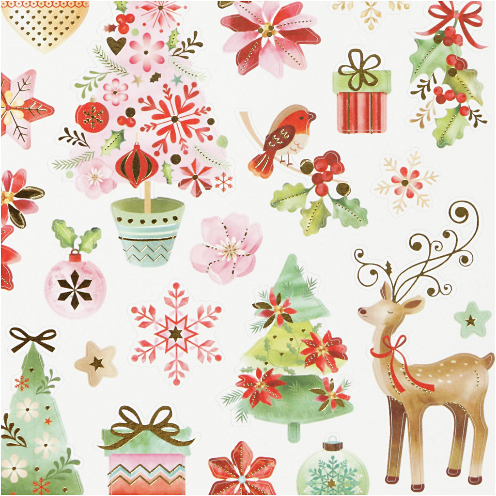Creativ Company Stickers, romantische kerst, vel 15x16,5 cm, ca. 43 stuk, 1 vel