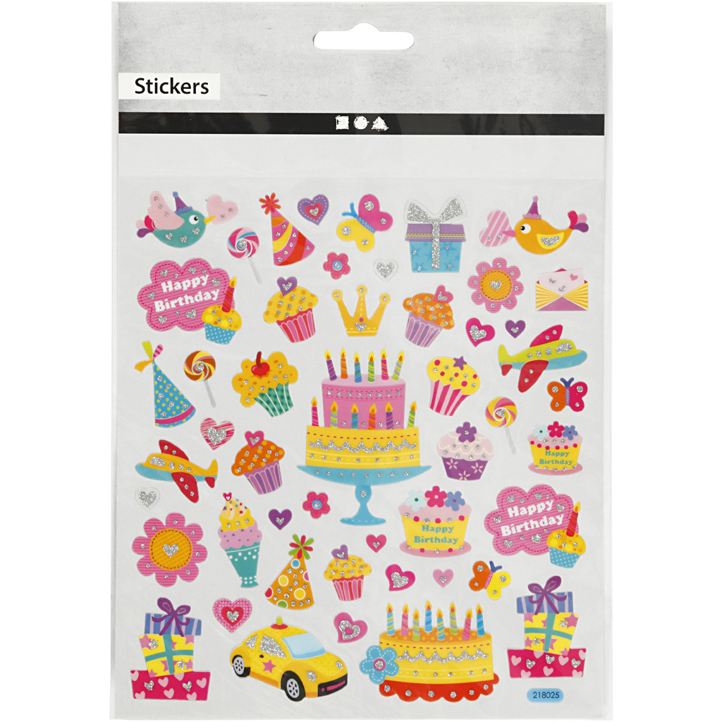 Creativ Company Stickers, verjaardag, vel 15x16,5 cm, ca. 49 stuk, 1 vel