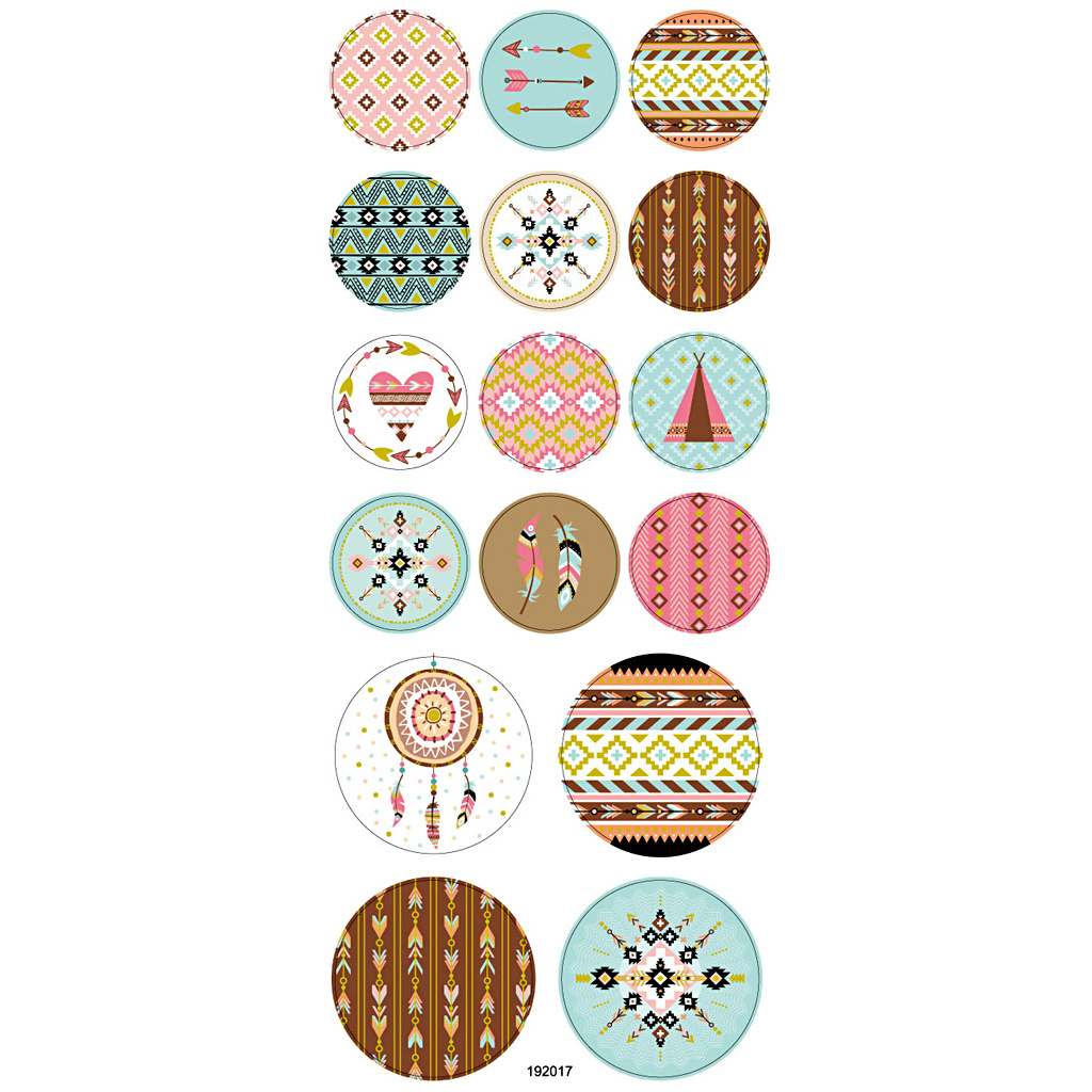 Deze stickers van Creativ Company zijn uitgevoerd met een sfeervol indianenthema en worden geleverd op een vel van 10 bij 23 cm. Ze zijn gemaakt van papier, waardoor ze gemakkelijk aan te brengen zijn op diverse gladde oppervlakken. Door het kleurrijke ontwerp zijn deze stickers ideaal voor het versieren van schriften, kaarten of knutselprojecten.