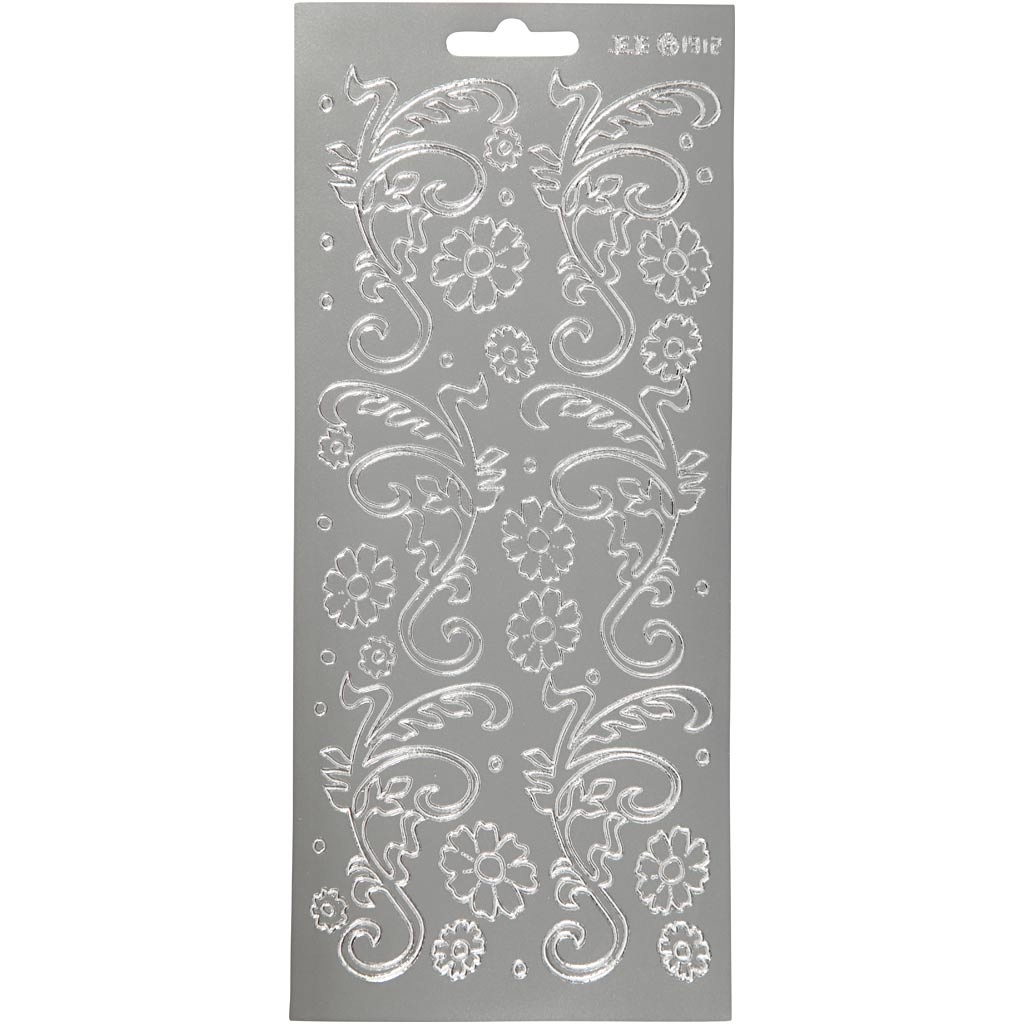 Creativ Company Stickers, deco bladeren, vel 10x23 cm, zilver, 1 vel