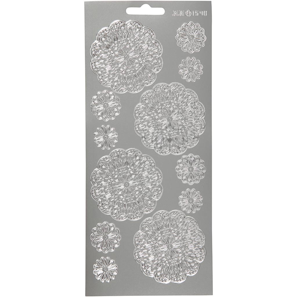 Creativ Company Stickers, bloemen, vel 10x23 cm, zilver, 1 vel