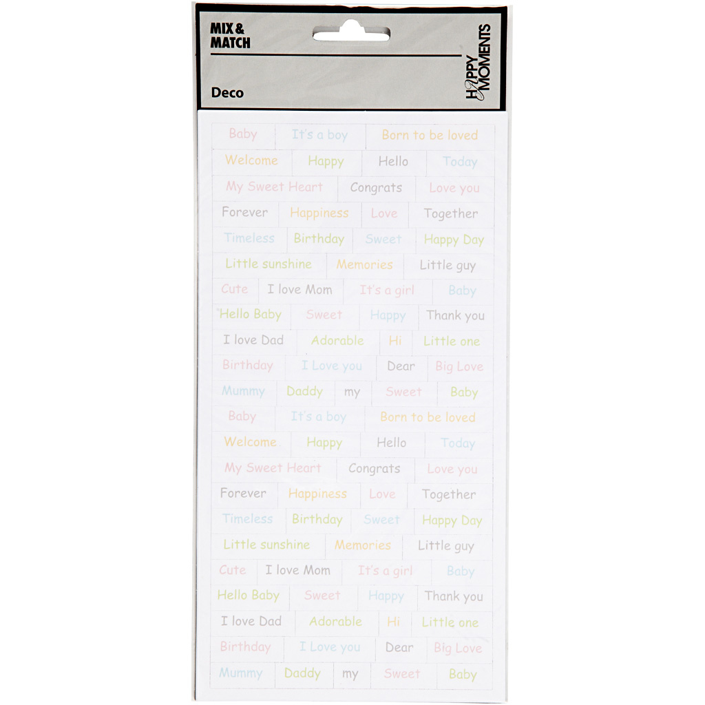 De Creativ Company stickers voor babythema zijn ideaal voor creatieve projecten zoals het versieren van babyalbums, uitnodigingen en cadeautjes. In één doos ontvangt u twee vellen van 84 stickers, elk met een handige afmeting van 12 bij 23 cm. Deze stickers zijn perfect voor mensen die graag zelf aan de slag gaan met scrapbooking of het personaliseren van babycadeaus.