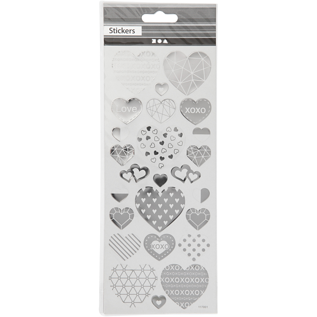 Creativ Company Stickers, harten, vel 10x24 cm, ca. 25 stuk, zilver, 1 vel