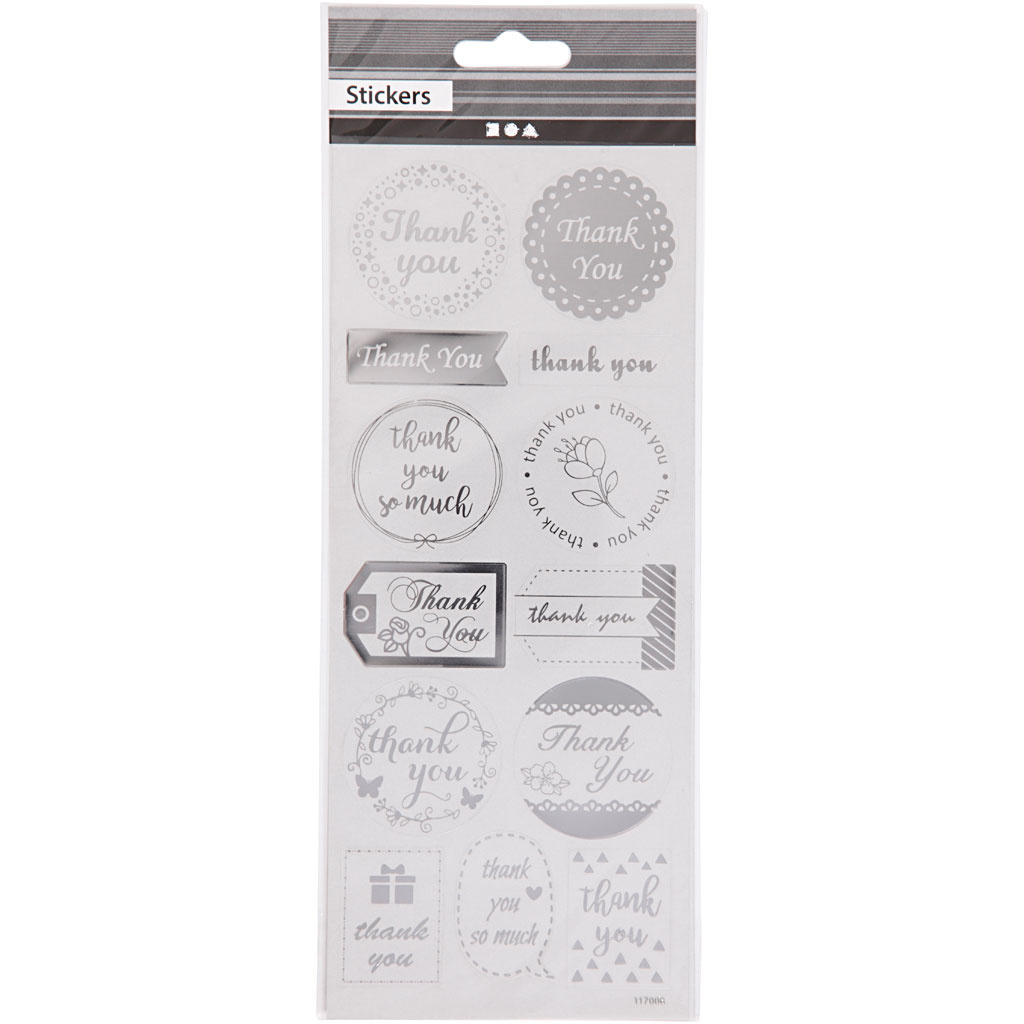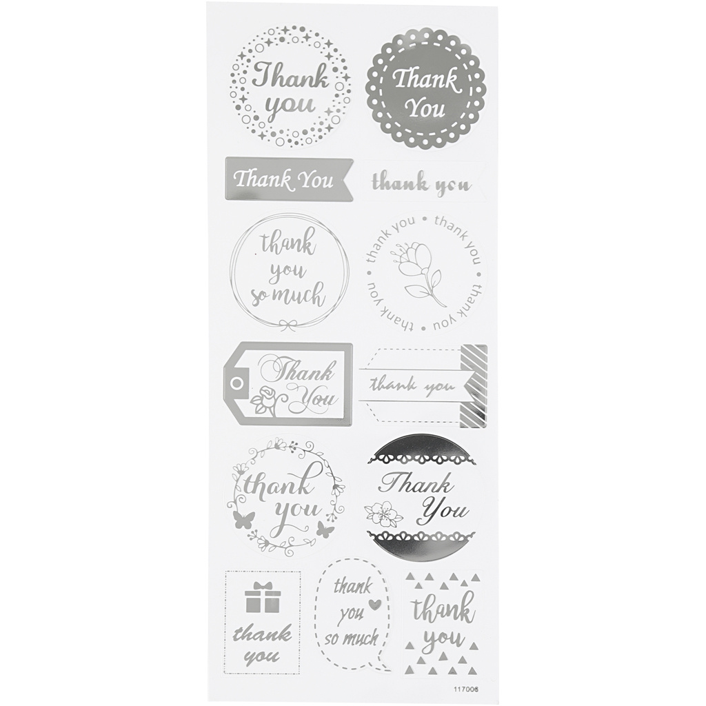 Creativ Company Stickers, thank you, vel 10x24 cm, ca. 13 stuk, zilver, 1 vel