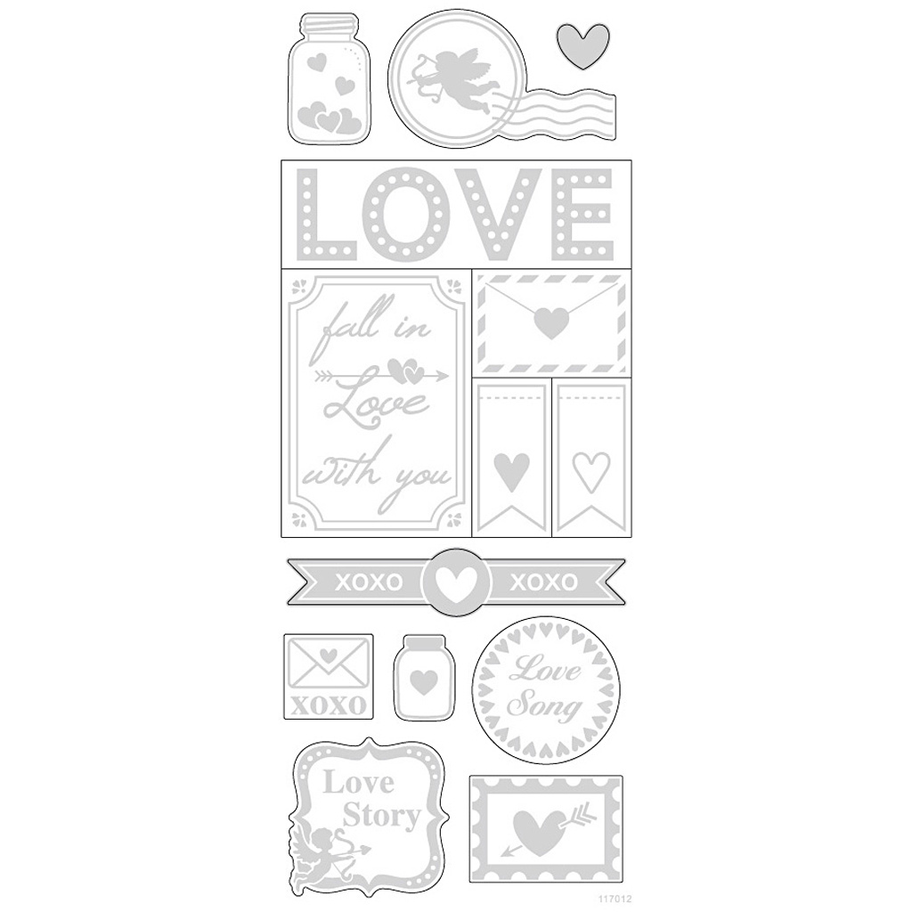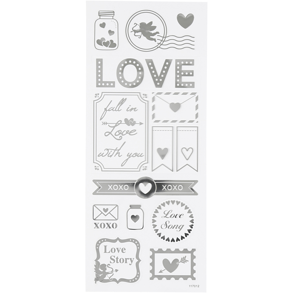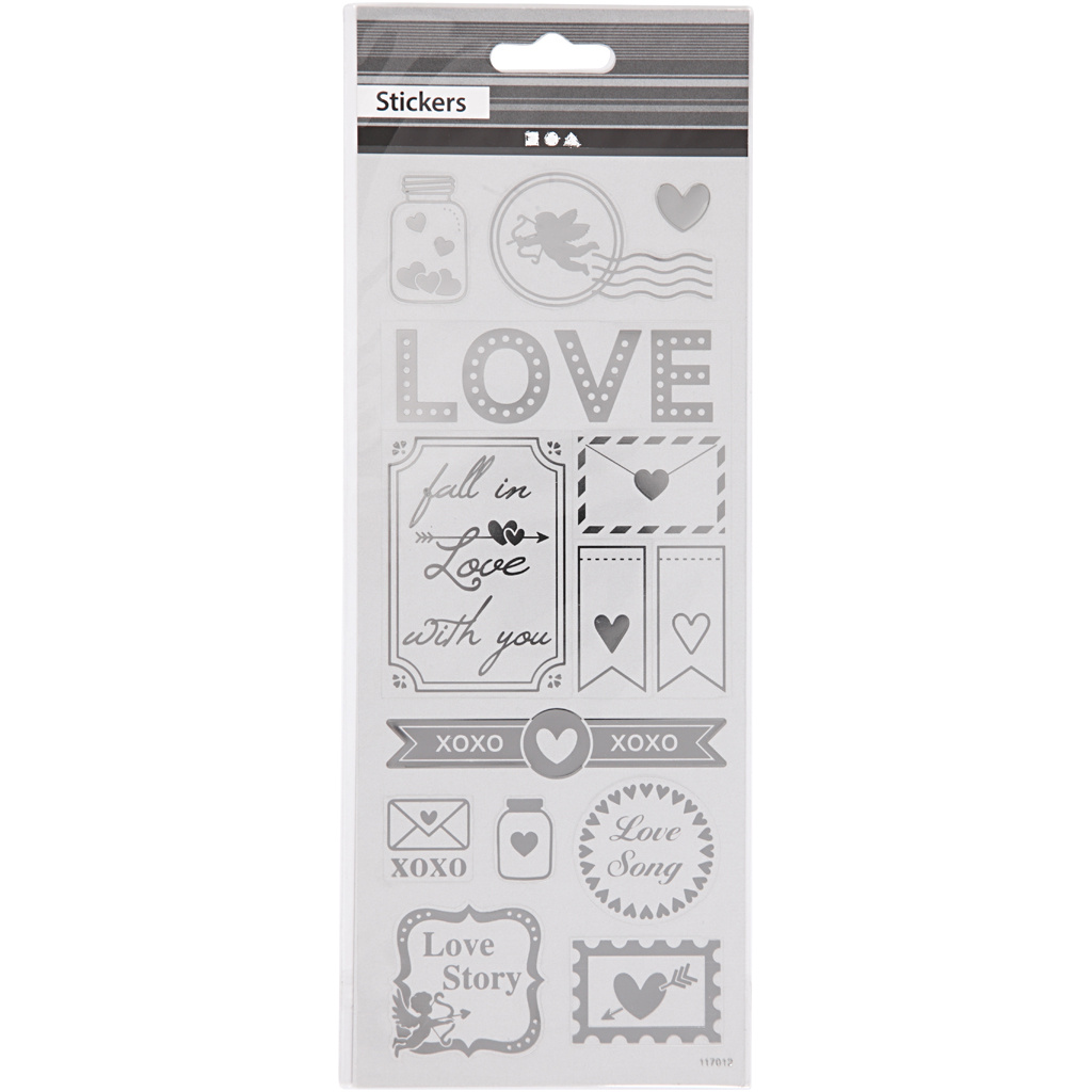 Creativ Company Stickers, love, vel 10x24 cm, ca. 14 stuk, zilver, 1 vel