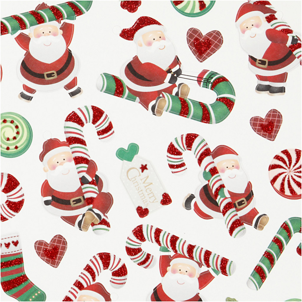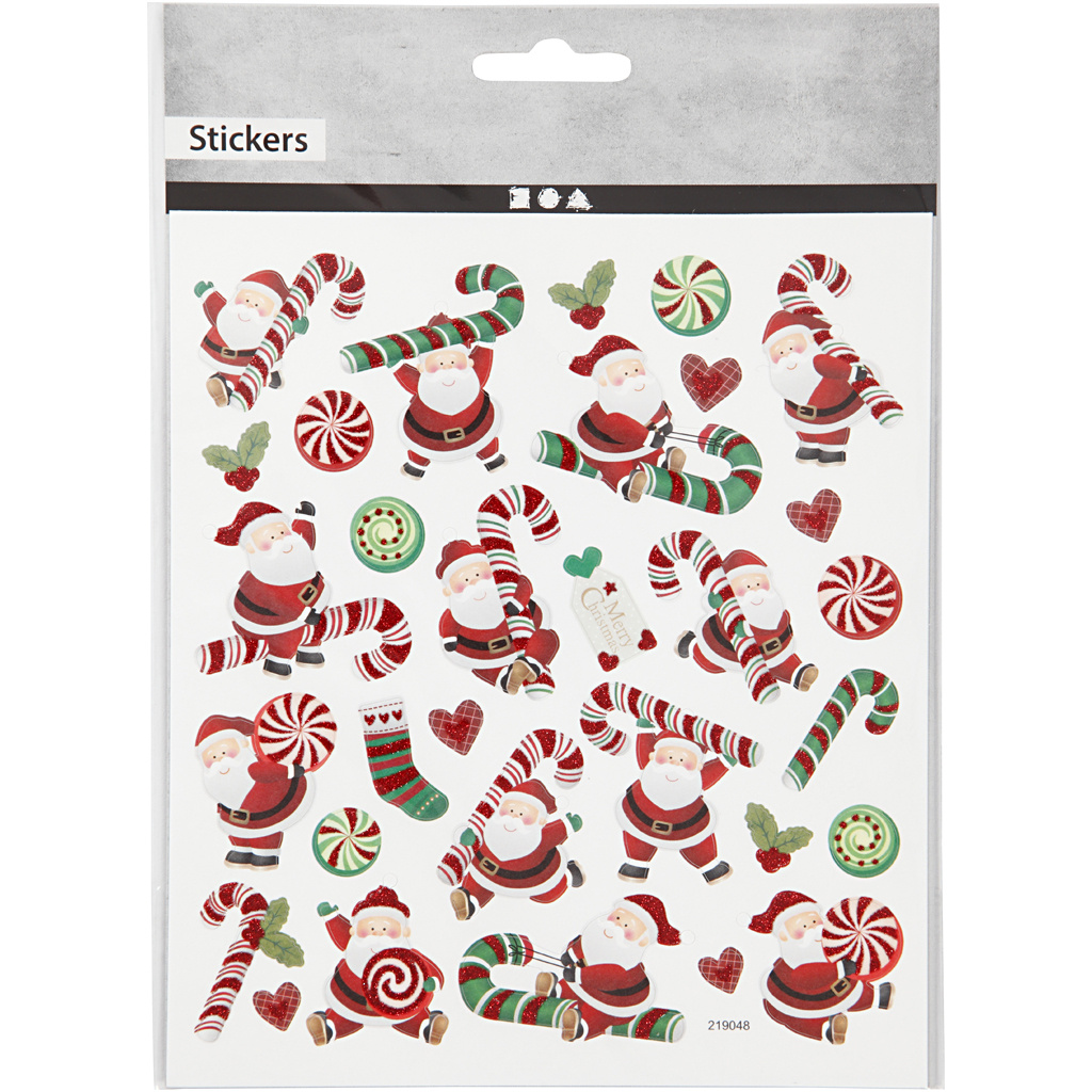 Creativ Company Stickers, kerstman met zuurstok, vel 15x16,5 cm, ca. 31 stuk, 1 vel