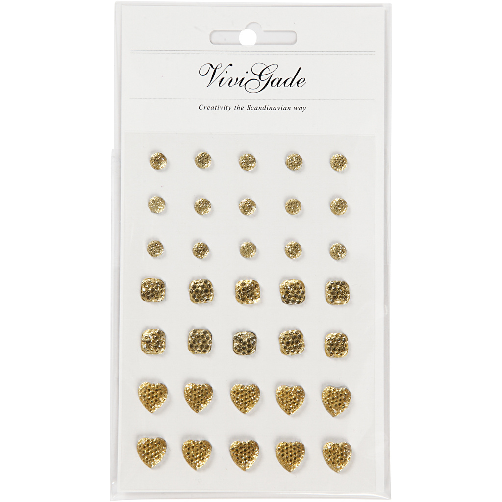 Vivi Gade Strasstenen, rond, vierkant, hart, afm 6+8+10 mm, goud, 35 stuk/ 1 doos