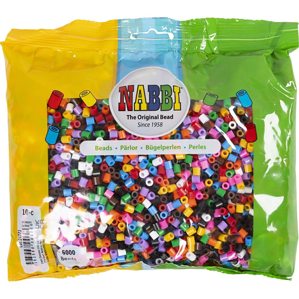 NABBI Strijkkralen, afm 5x5 mm, gatgrootte 2,5 mm, medium, standaardkleuren, 6000 div/ 1 doos