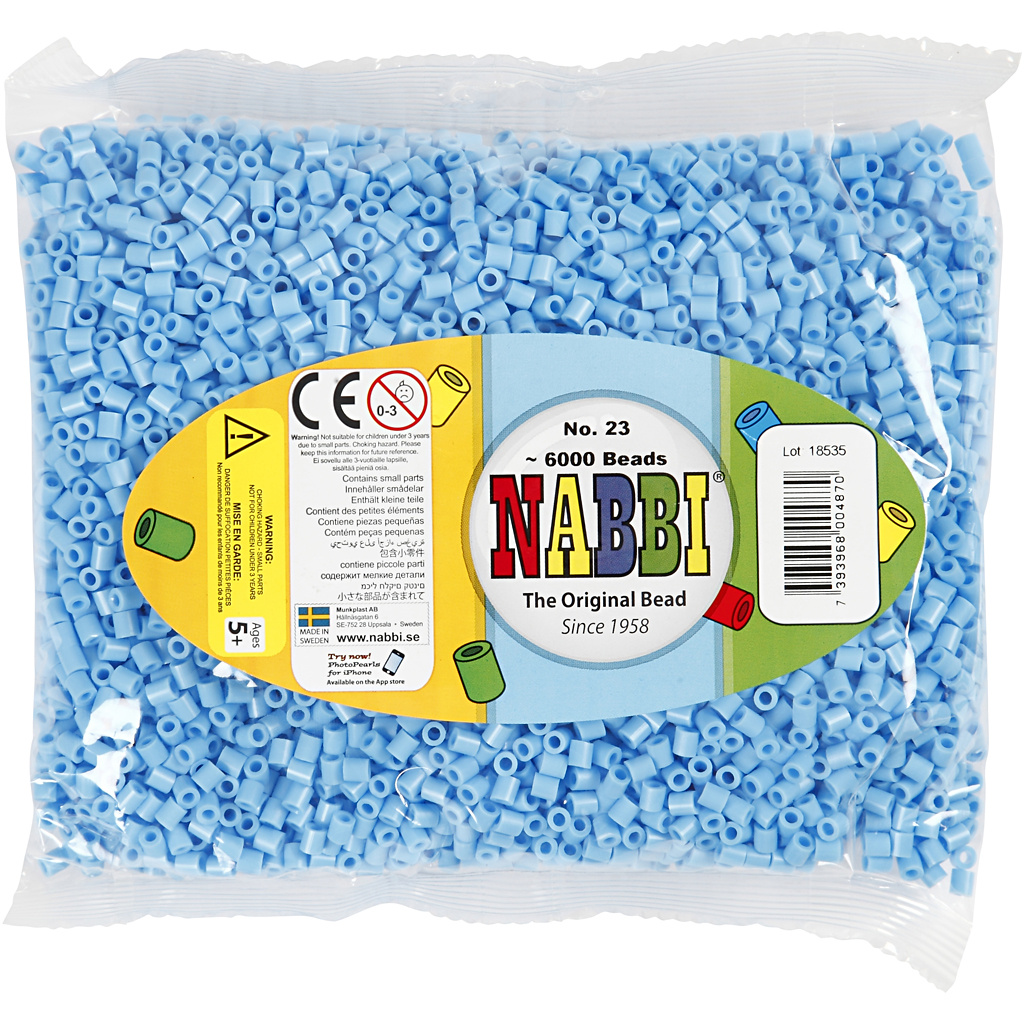 NABBI Strijkkralen, afm 5x5 mm, gatgrootte 2,5 mm, medium, pastel blauw (32224), 6000 stuk/ 1 doos
