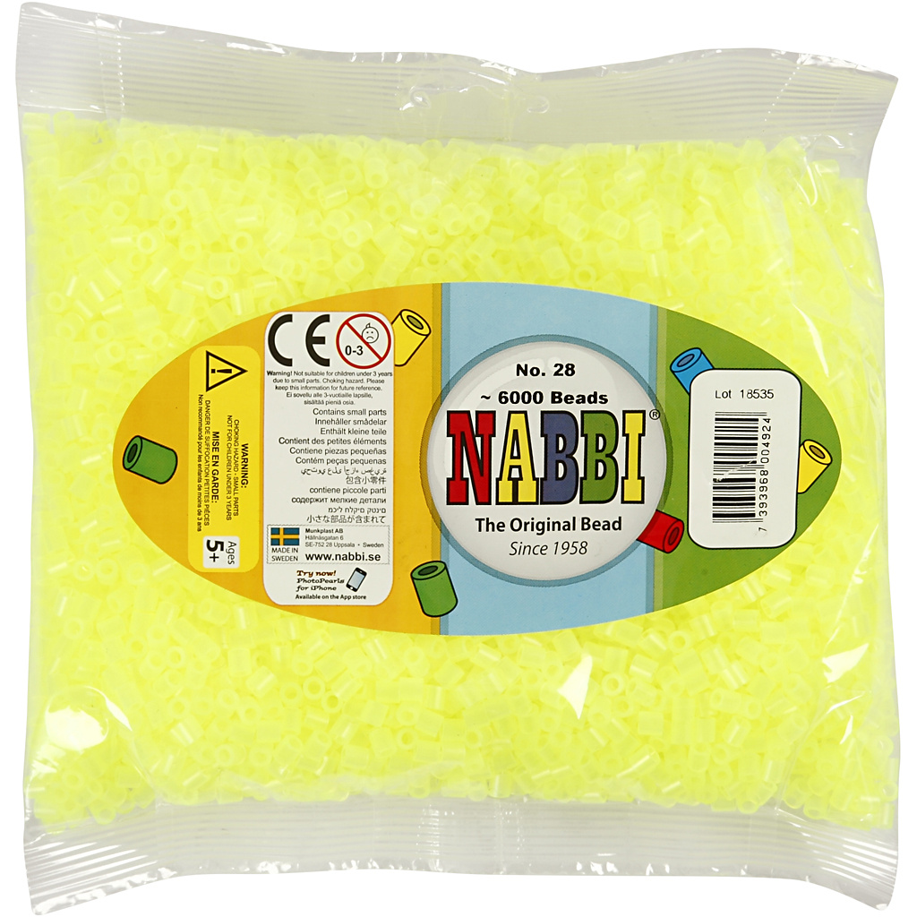 NABBI Strijkkralen, afm 5x5 mm, gatgrootte 2,5 mm, medium, neon geel (32223), 6000 stuk/ 1 doos