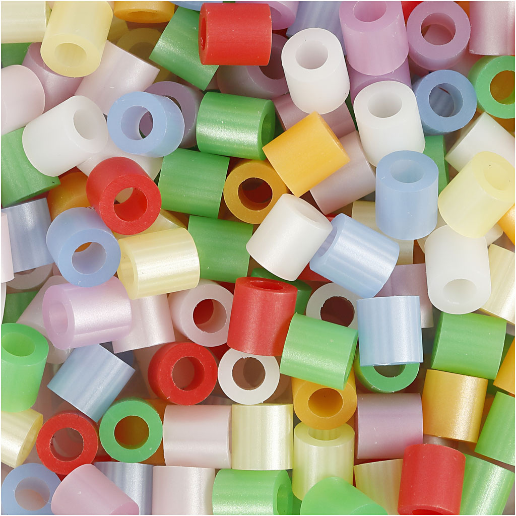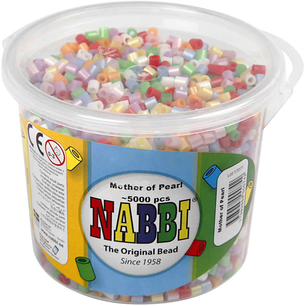 NABBI Strijkkralen, afm 5x5 mm, gatgrootte 2,5 mm, medium, parelmoer kleuren, 5000 div/ 1 emmer
