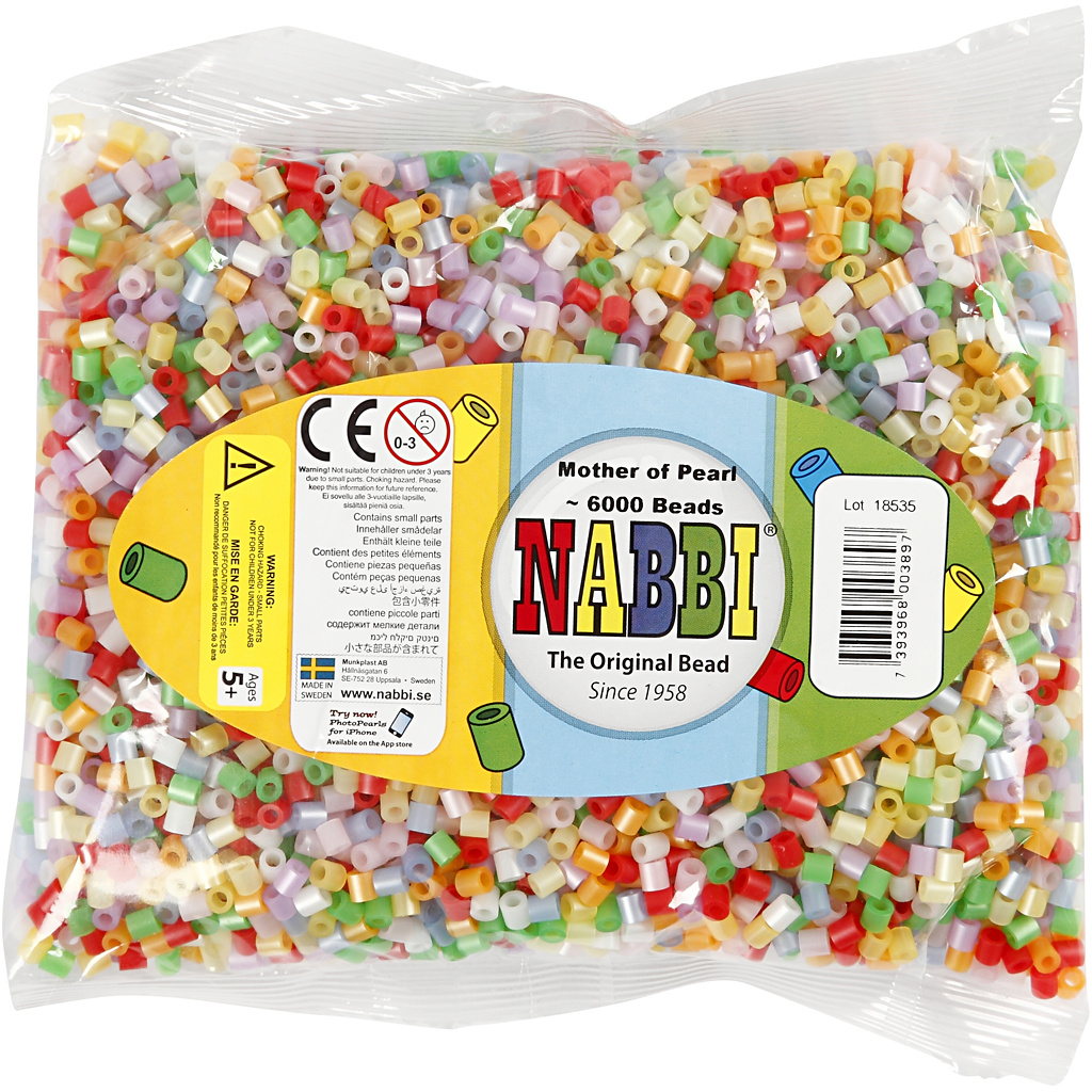 NABBI Strijkkralen, afm 5x5 mm, gatgrootte 2,5 mm, medium, parelmoer kleuren, 6000 div/ 1 doos