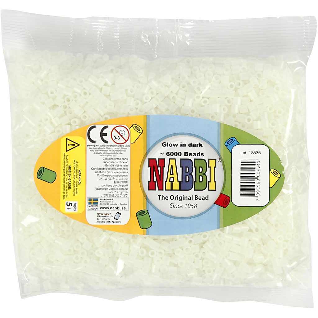 NABBI Strijkkralen, afm 5x5 mm, gatgrootte 2,5 mm, medium, lichtgevend, 6000 div/ 1 doos