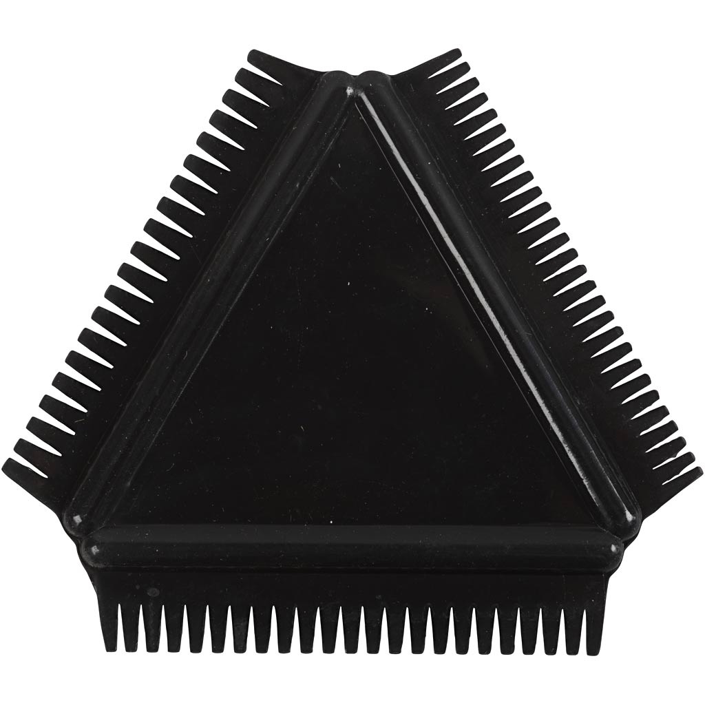 Driehoekige structuurkam van rubber met drie verschillende tandenmaten - om diverse structuureffecten op verf of klei te maken Lees meer