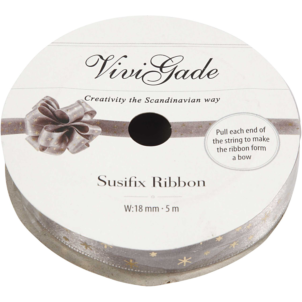 De Susifix lint van het merk Vivi Gade is een praktische en stijlvolle toevoeging voor allerlei creatieve projecten. Deze rol bevat 5 meter grijs lint met een breedte van 18 mm, waardoor het zowel subtiel als opvallend gebruikt kan worden. Of je nu decoraties wilt aanbrengen op cadeaus, kaarten wilt verfraaien of accessoires wilt maken, dit lint biedt volop mogelijkheden.