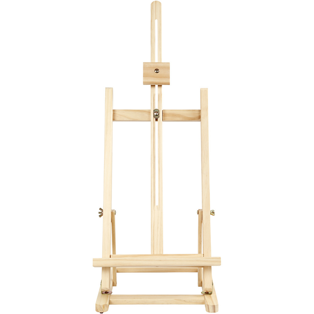 De Tafelezel van Creativ Company is een praktische houten schildersezel, perfect geschikt voor zowel professionals als hobbyisten. Dit model heeft een hoogte van 76 cm en een breedte van 27,5 cm, waardoor het gemakkelijk op een tafel te plaatsen is zonder veel ruimte in te nemen. Dankzij het gebruik van hout straalt de ezel een natuurlijke en tijdloze uitstraling uit die goed past in verschillende werkomgevingen.