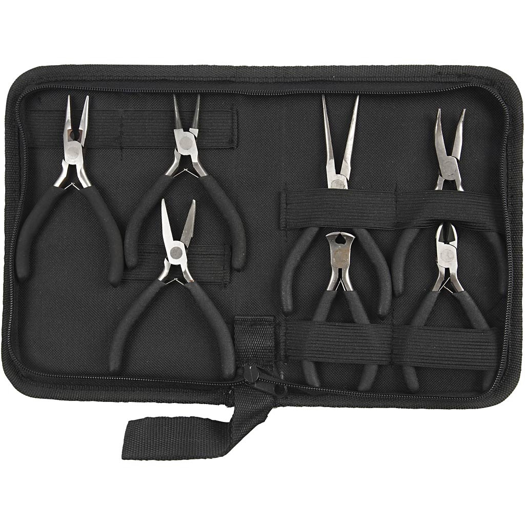 Deze set bevat 7 verschillende tangen met ergonomische soft grip handvaten - geschikt voor sieraden maken Geleverd in een handig etui met rits