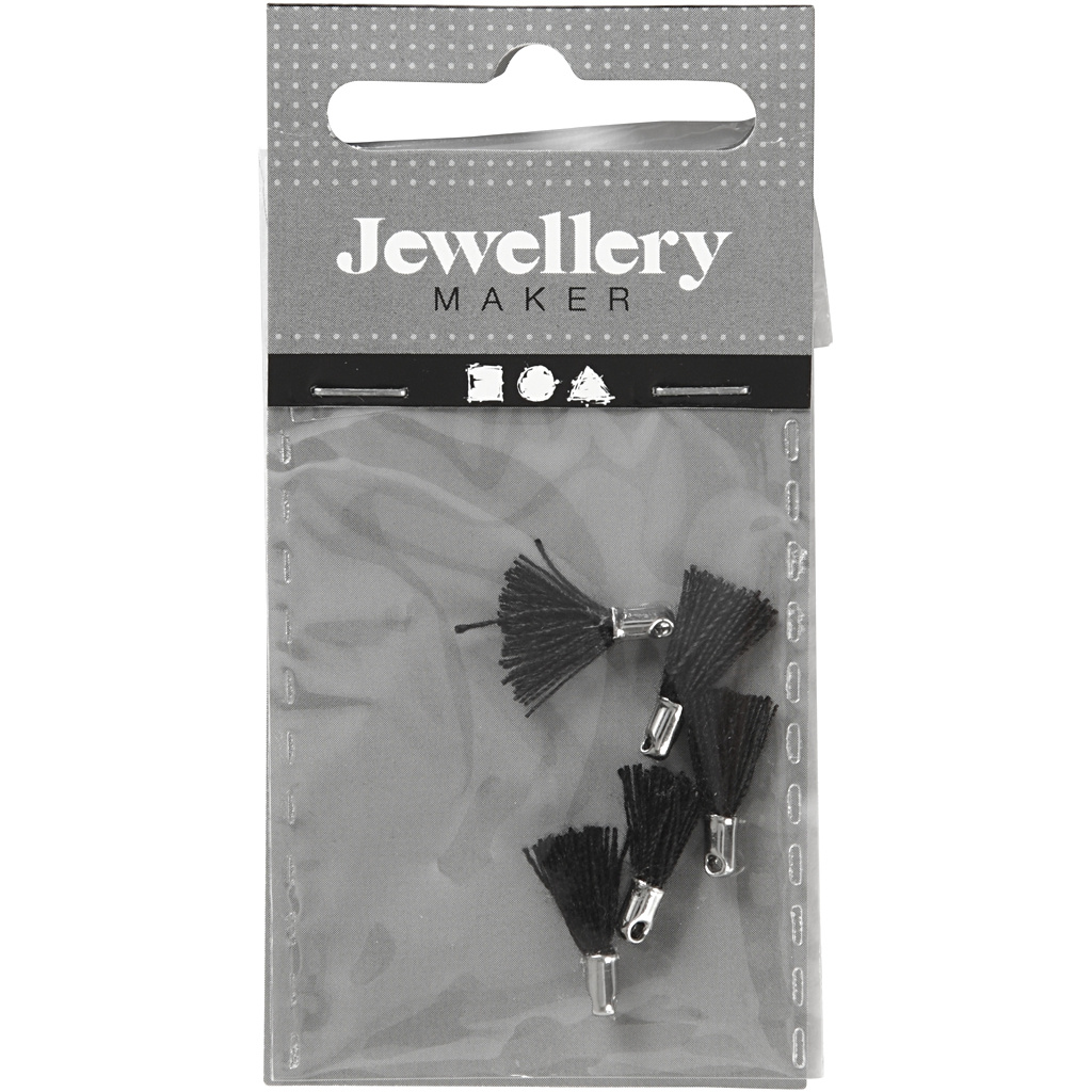 Creativ Company Tassel, L: 10 mm, gatgrootte 1 mm, zwart, 5 stuk/ 1 doos