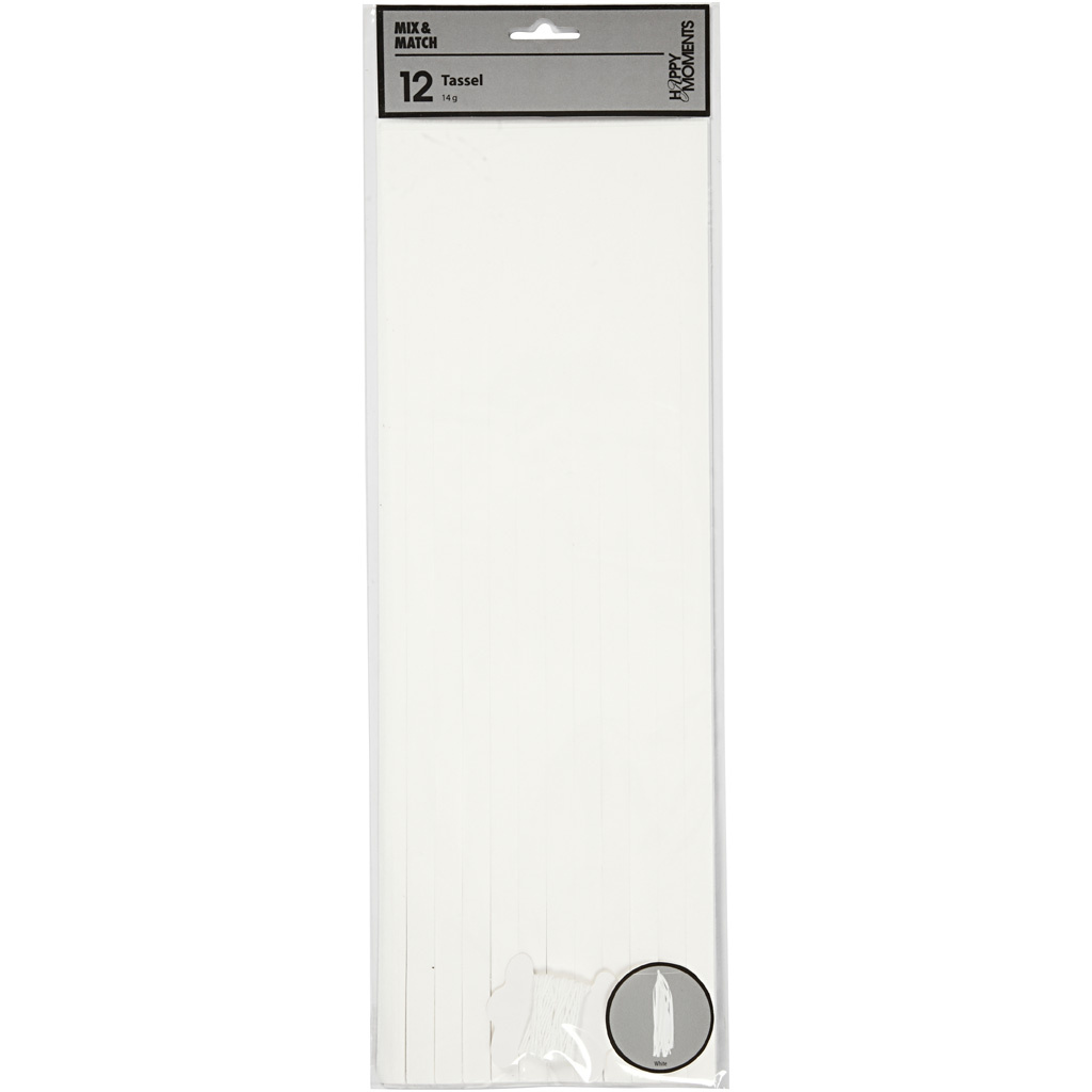 Creativ Company Tassels, afm 12x35 cm, 14 gr, wit, 12 stuk/ 1 doos