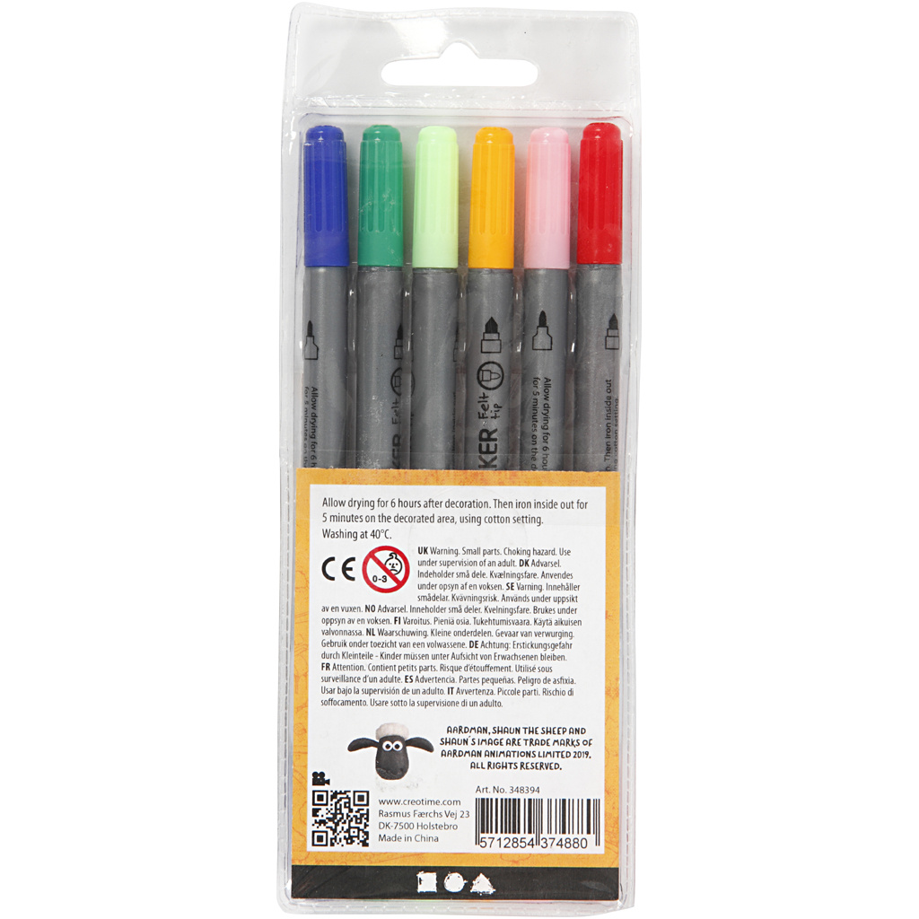Creativ Company Textielstiften, lijndikte 2,3+3,6, diverse kleuren, 6 stuk/ 1 doos