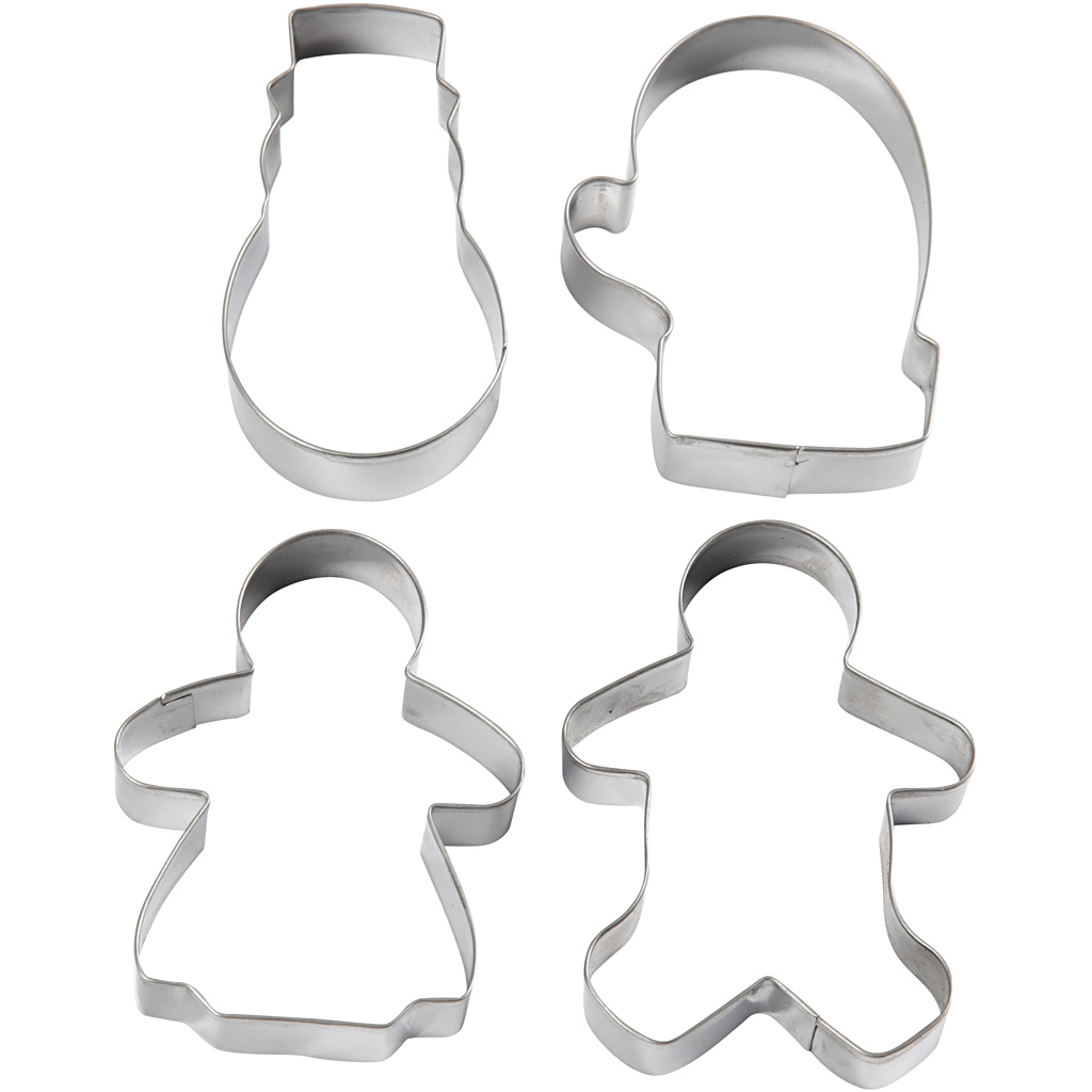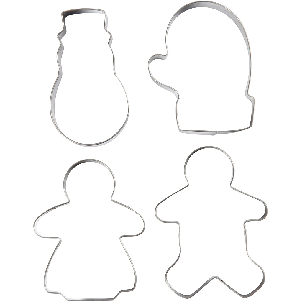 Creativ Company Uitsteekvormen, sneeuwpop, handschoen, peperkoekevrouwtje - en mannetje, H: 8 cm, 4 stuk/ 1 doos