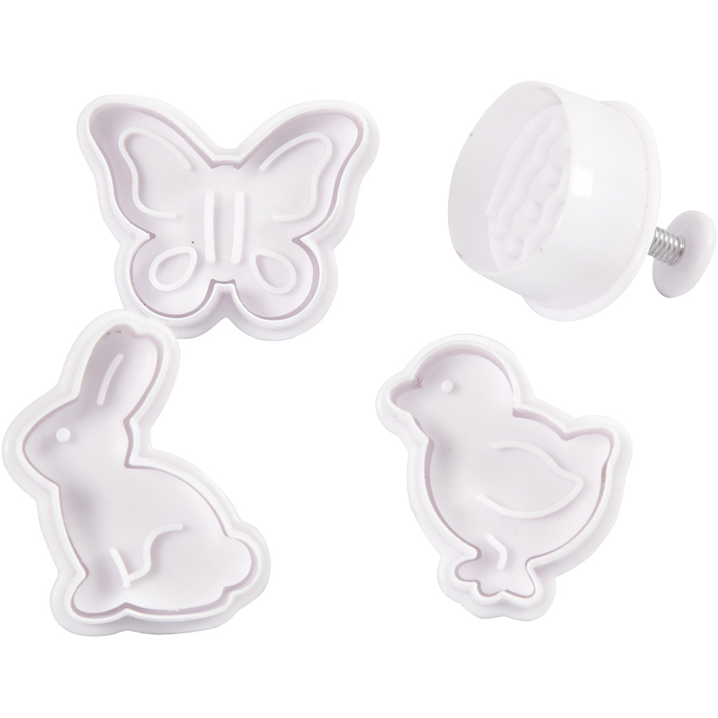 Creativ Company Uitsteekvormen met stempel, Paasei, haas, kip, vlinder, H: 5 cm, wit, 4 stuk/ 1 doos