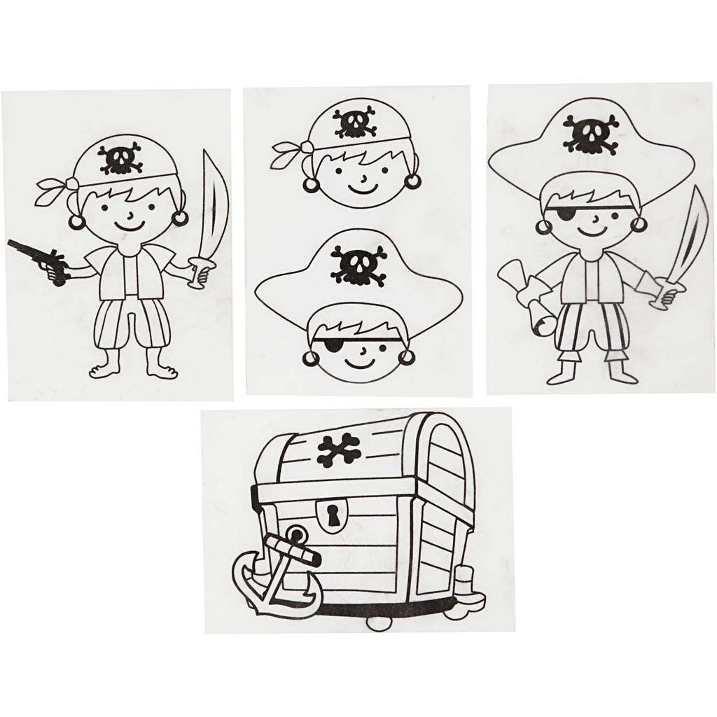 Creativ Company Vellen krimpfolie met motieven, piraten, vel 10,5x14,5 cm, dikte 0,3 mm, mat transparant, 4 vel/ 1 doos